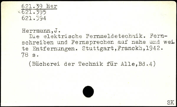 DjLe elektrische Fernmeldetechnik. Fernschreiben und Fernsprecher auf nahe und wei. te Entfernungen. Stuttgart,'Franckh, 1942.