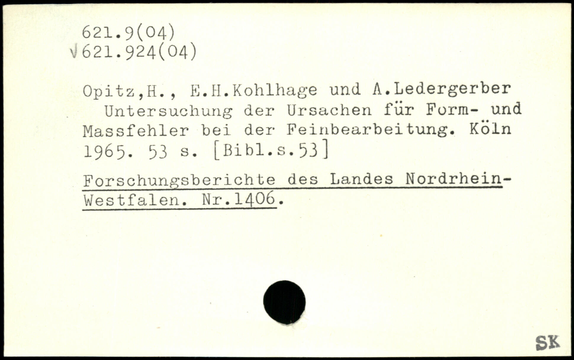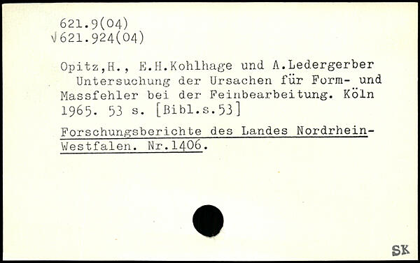 Opitz,H., E.H.Kohlhage und A.Ledergerber Untersuchung der Ursachen für Form- und Massfehler bei der Feinbearbeitung.