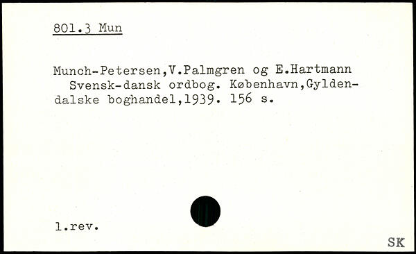 Munch-Petersen,V.Palmgren og E.Hartmann Svensk-dansk ordbog.