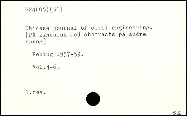 Ghinese journal of civil engineering. [På kinesisk med abstracts på andre sprog] Peking 19 57 — 59.