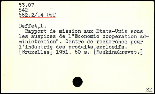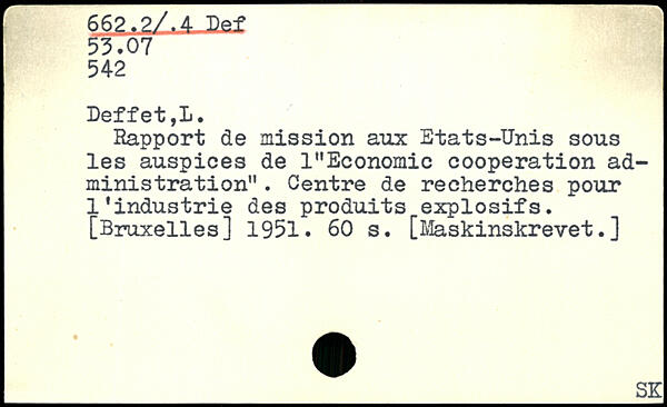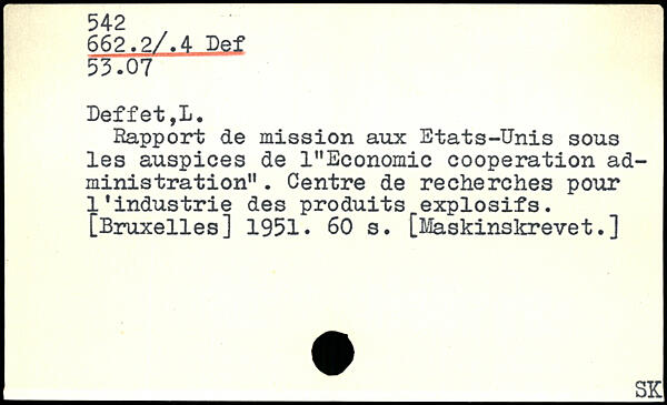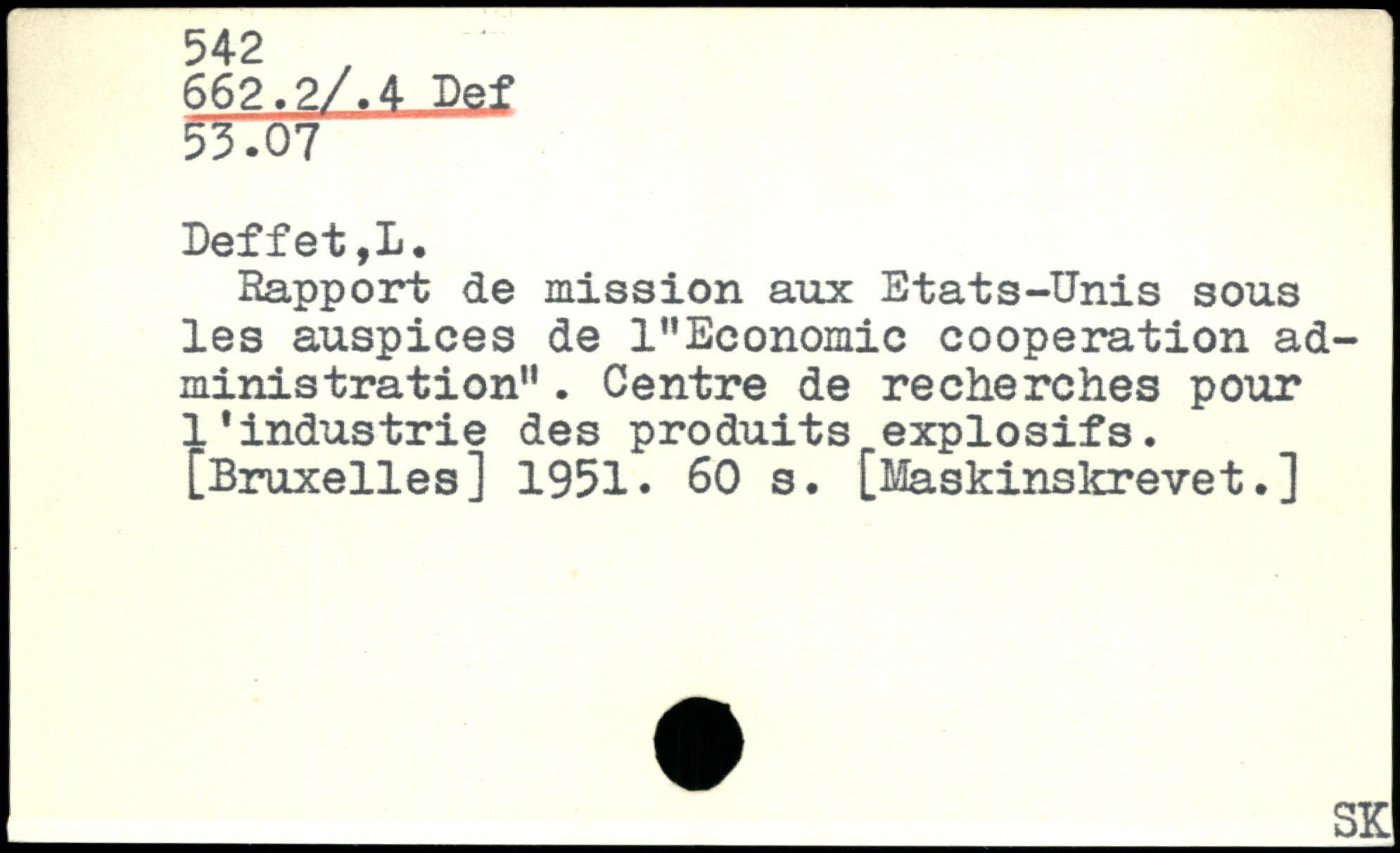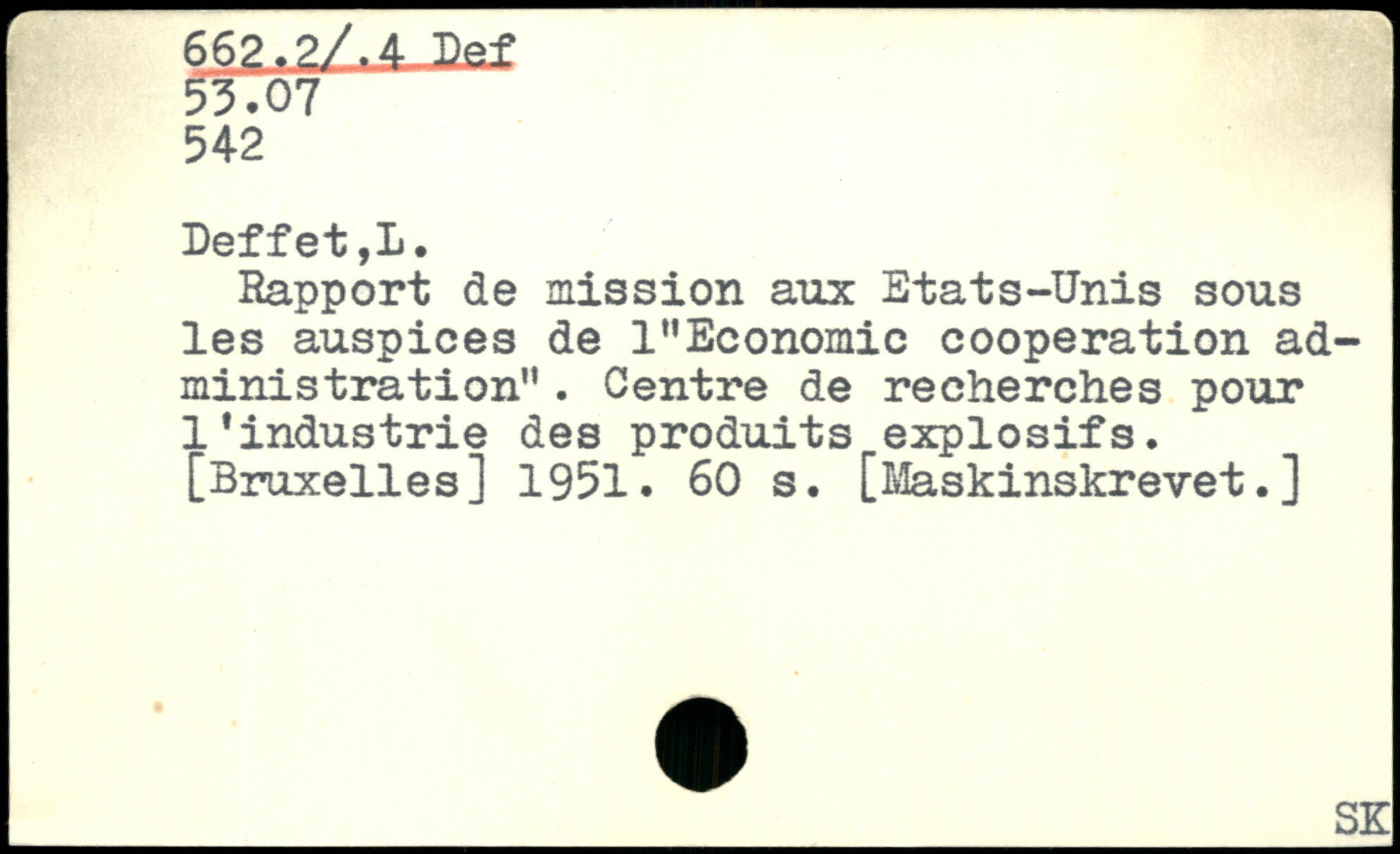 Rapport de mission aux Etats-Unis sous les auspices de l"Economic coopération administration”. Centre de recherches pour l'industrie des produits explosifs.
