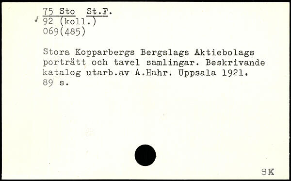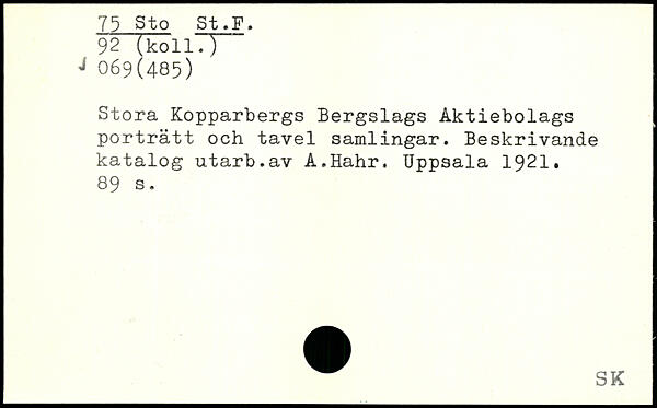 Stora Kopparbergs Bergslags Aktiebolags porträtt och tavel samlingar. Beskrivande katalog utarb.av A.Hahr.