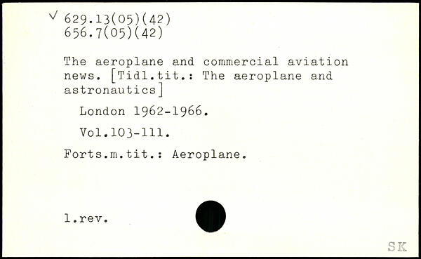The aeroplane and commercial aviation news. [Tidl.tit.: The aeroplane and astronautics]