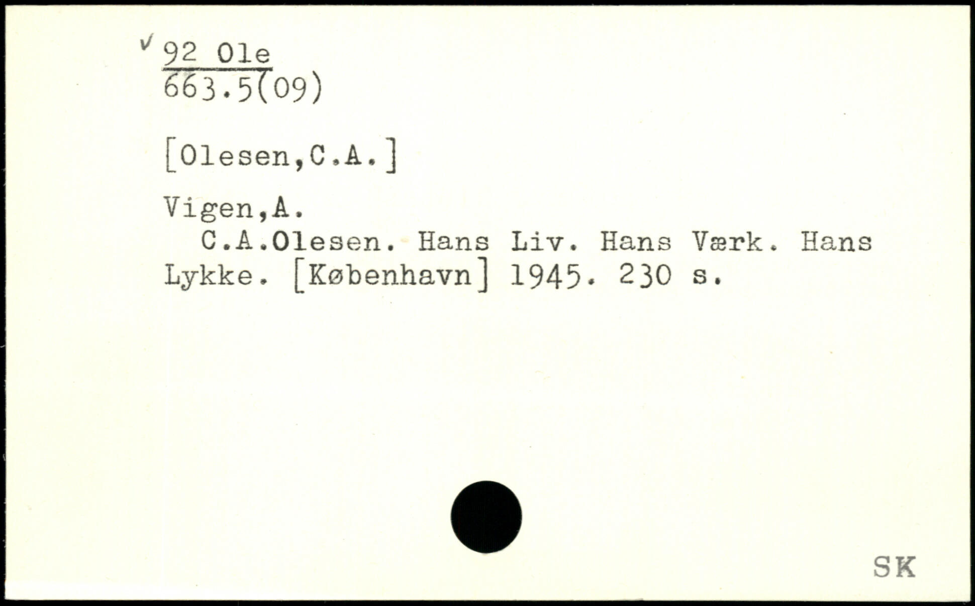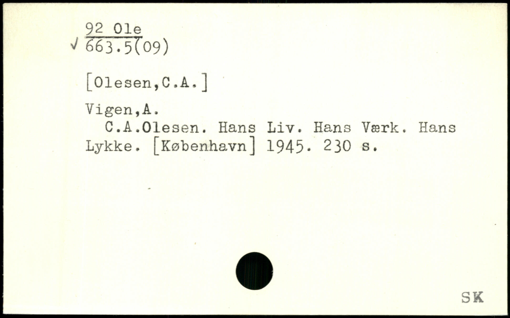 C.A.Olesen. Hans Liv. Hans Værk. Hans Lykke.