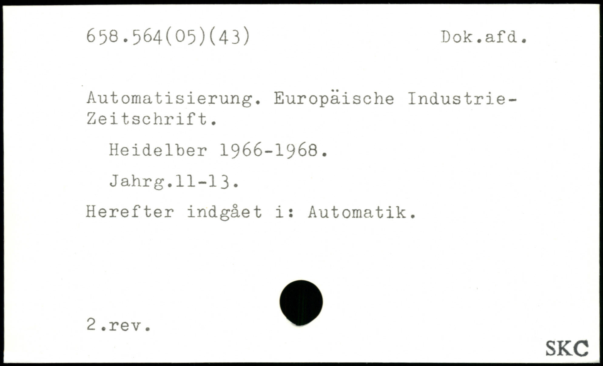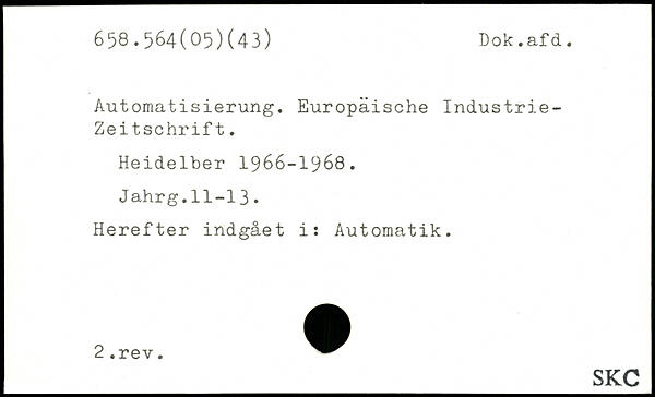 Automatisierung. Europäische Industrie-Zeitschrift. Heideiber 1966-1968. Jahrg.11-13. Herefter indgået i: Automatik.