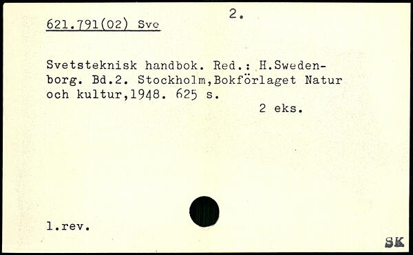 Svetsteknisk handbok. Red.: H.Sweden-borg.
