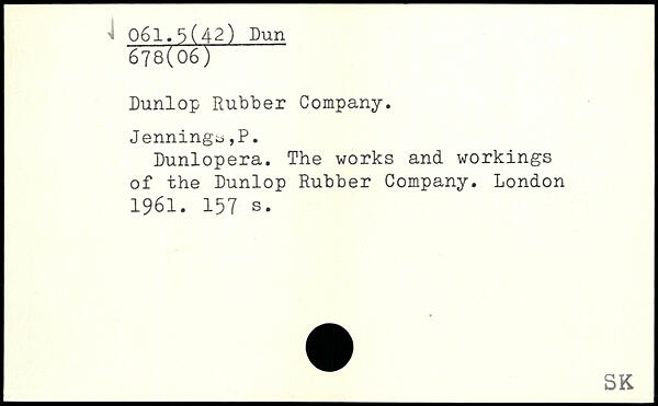 Dunlop Rubber Company. Jennings,P. Dunlopera. The works and workings of the Dunlop Rubber Company.