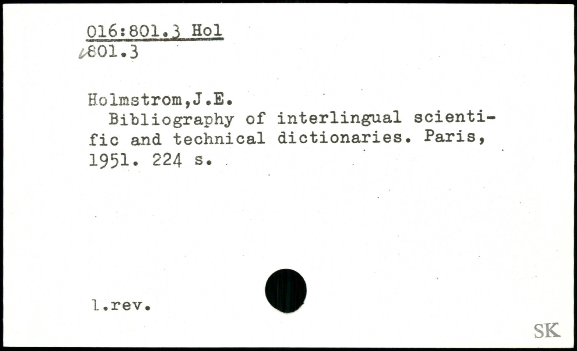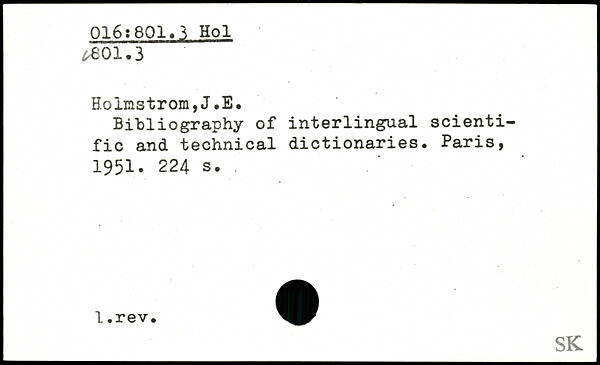 Bibliography of interlingual scientific and technical dictionaries. Paris, 1951.