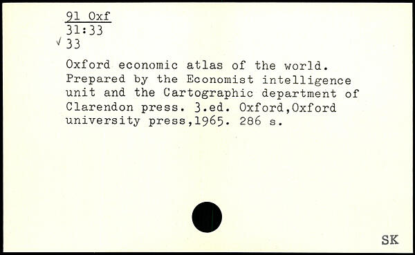 Oxford economic atlas of the world. Prepared by the Economist intelligence unit and the Cartographic department of Clarendon press.