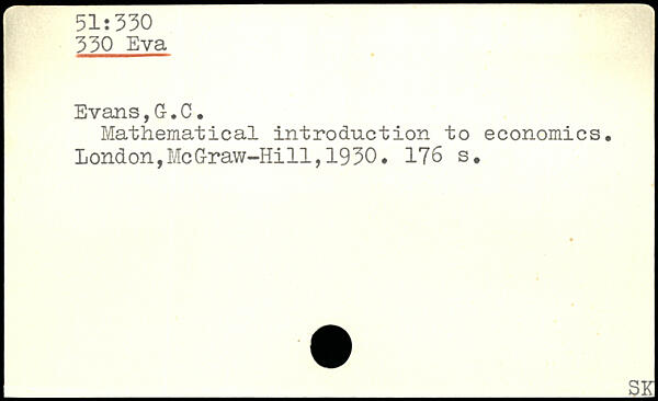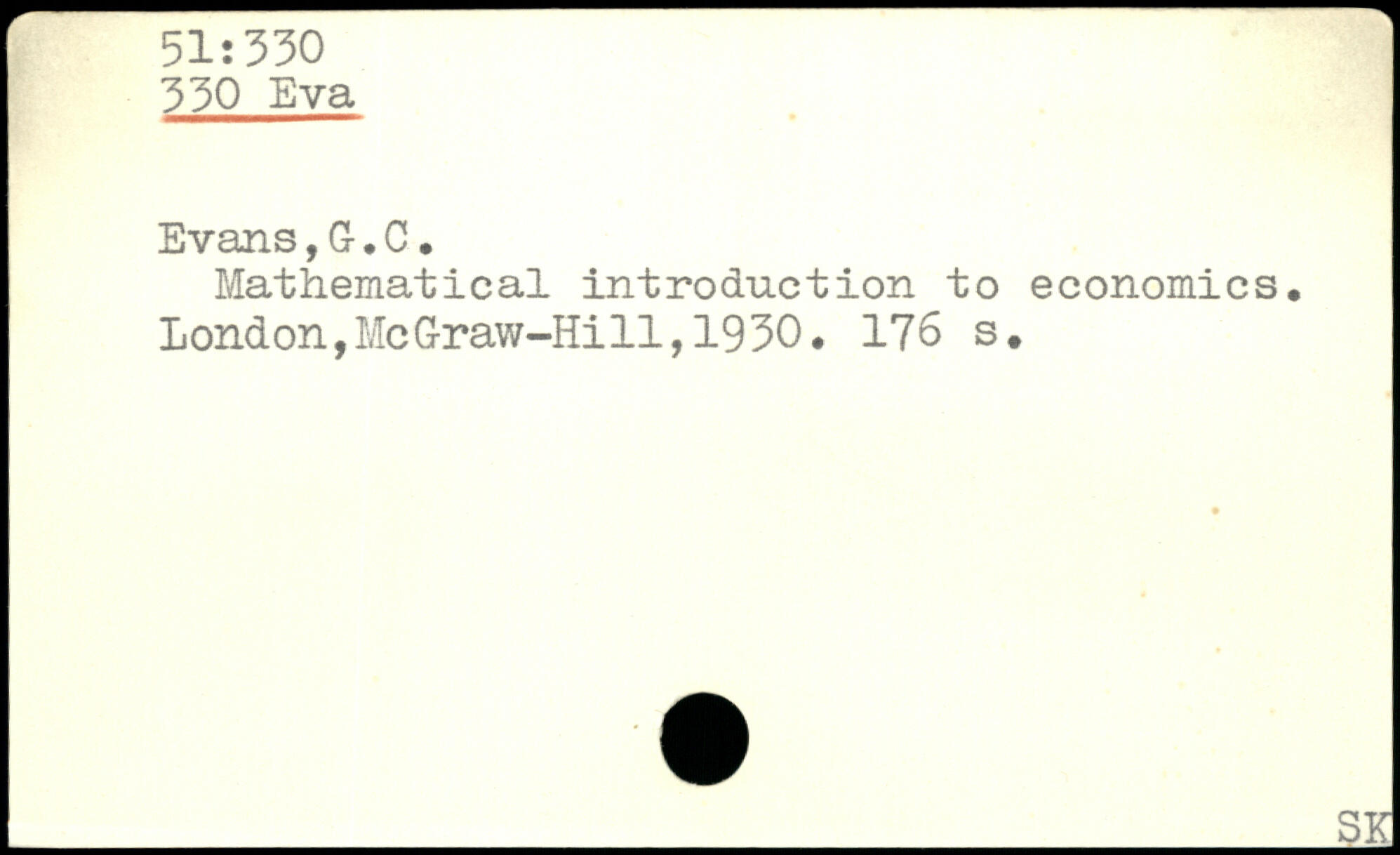 Mathematical introduction to economics, London,McGraw-Hill,1930, 176 s.
