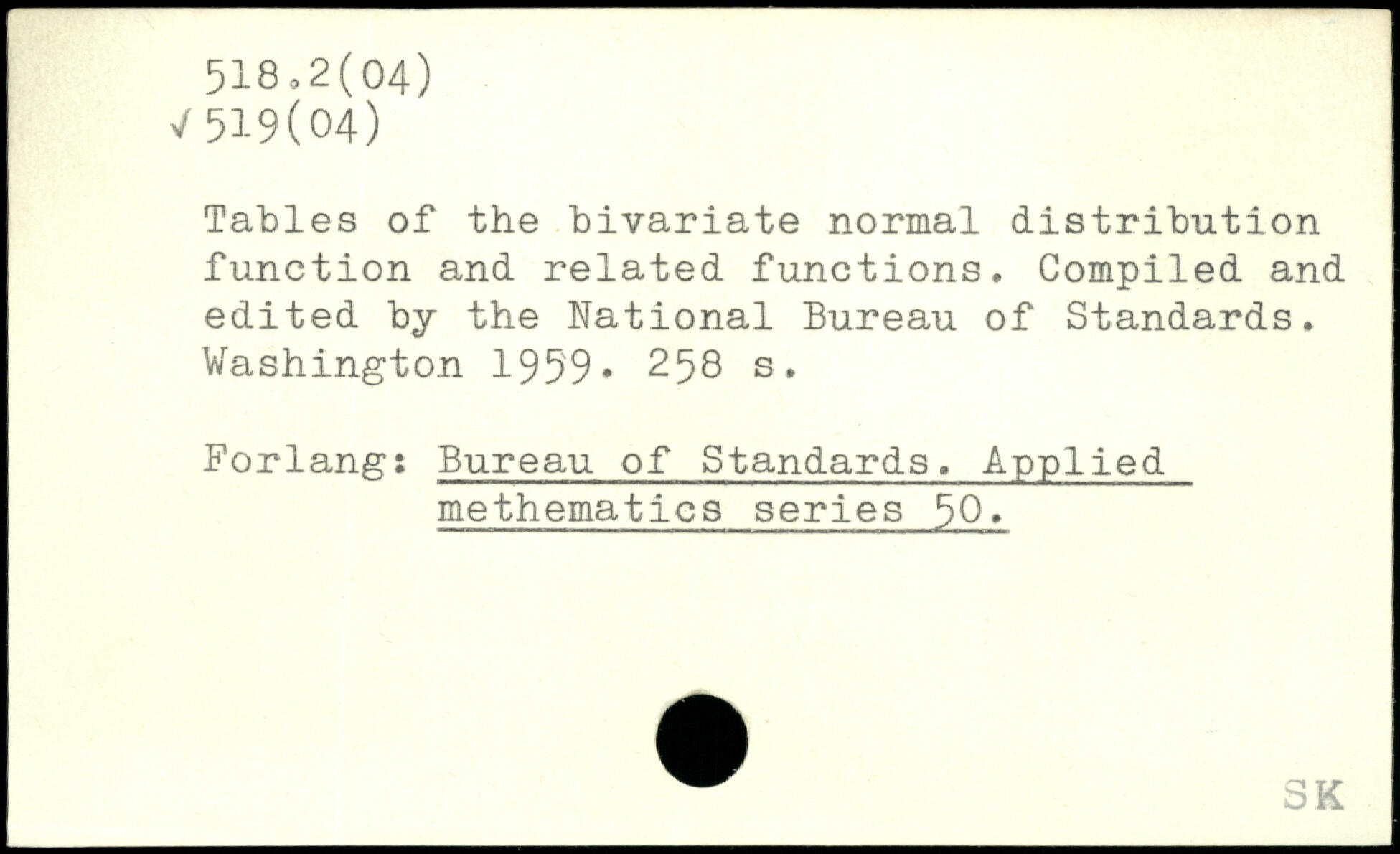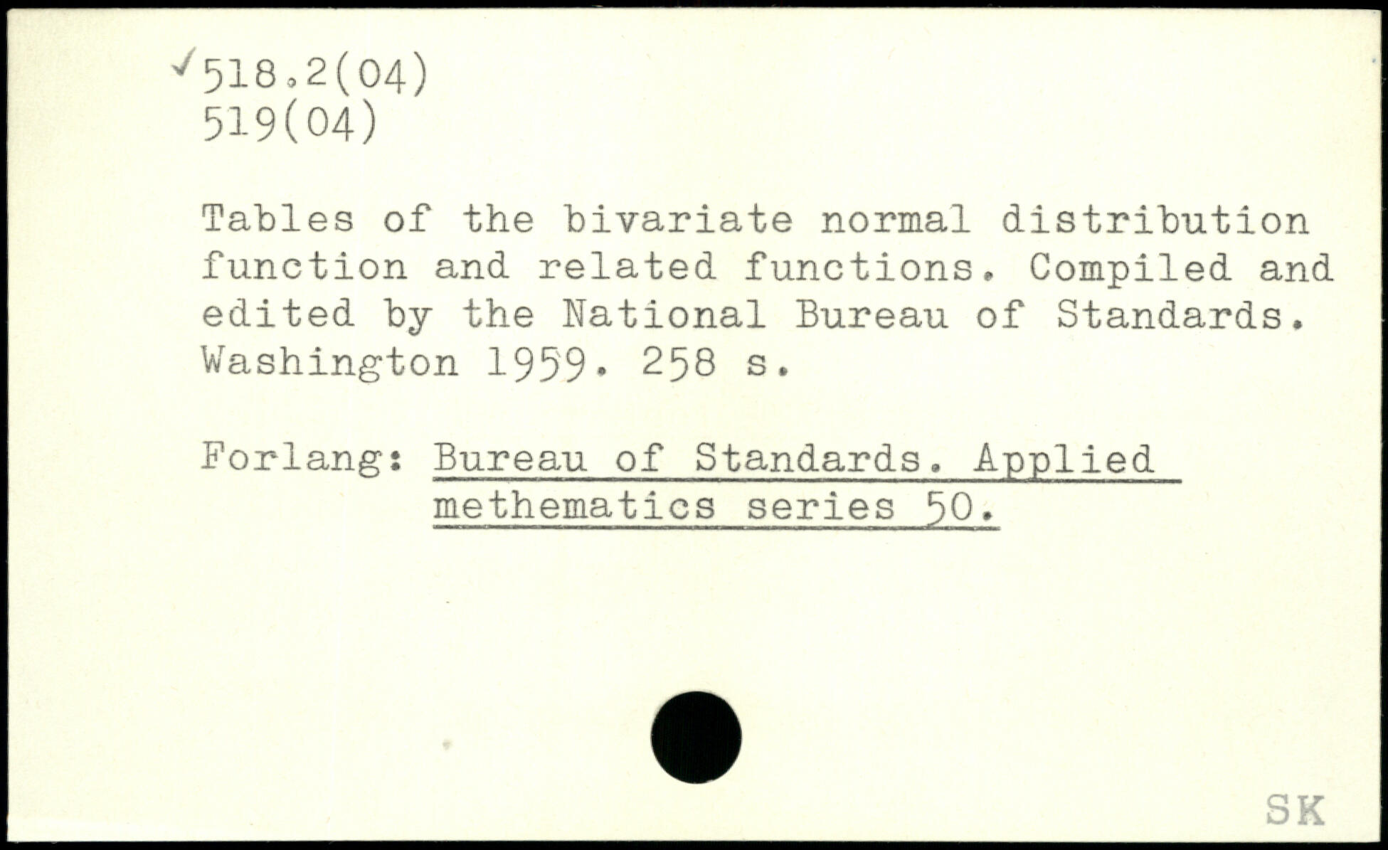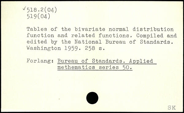 Tables of the bivariate normal distribution function and related functions. Compiled and edited by the National Bureau of Standards.