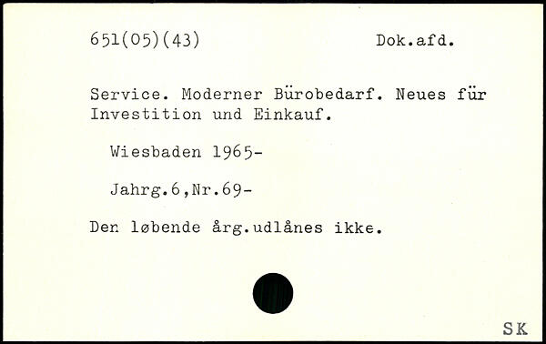 Service. Moderner Burobedarf. Neues für Investition und Einkauf. Wiesbaden 1965- Jahrg.6,Nr.69- Den løbende årg.udlånes ikke.