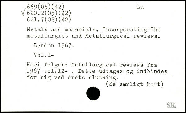 Metals and materials. Incorporating The metallurgist and Metallurgical reviews.