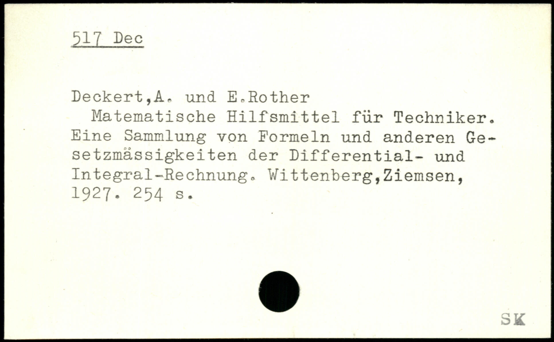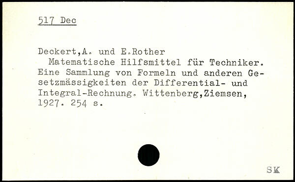 Matematische Hilfsmittel für Techniker. Eine Sammlung von Formeln und anderen Gesetzmässigkeiten der Differential- und Integral-Rechnung.