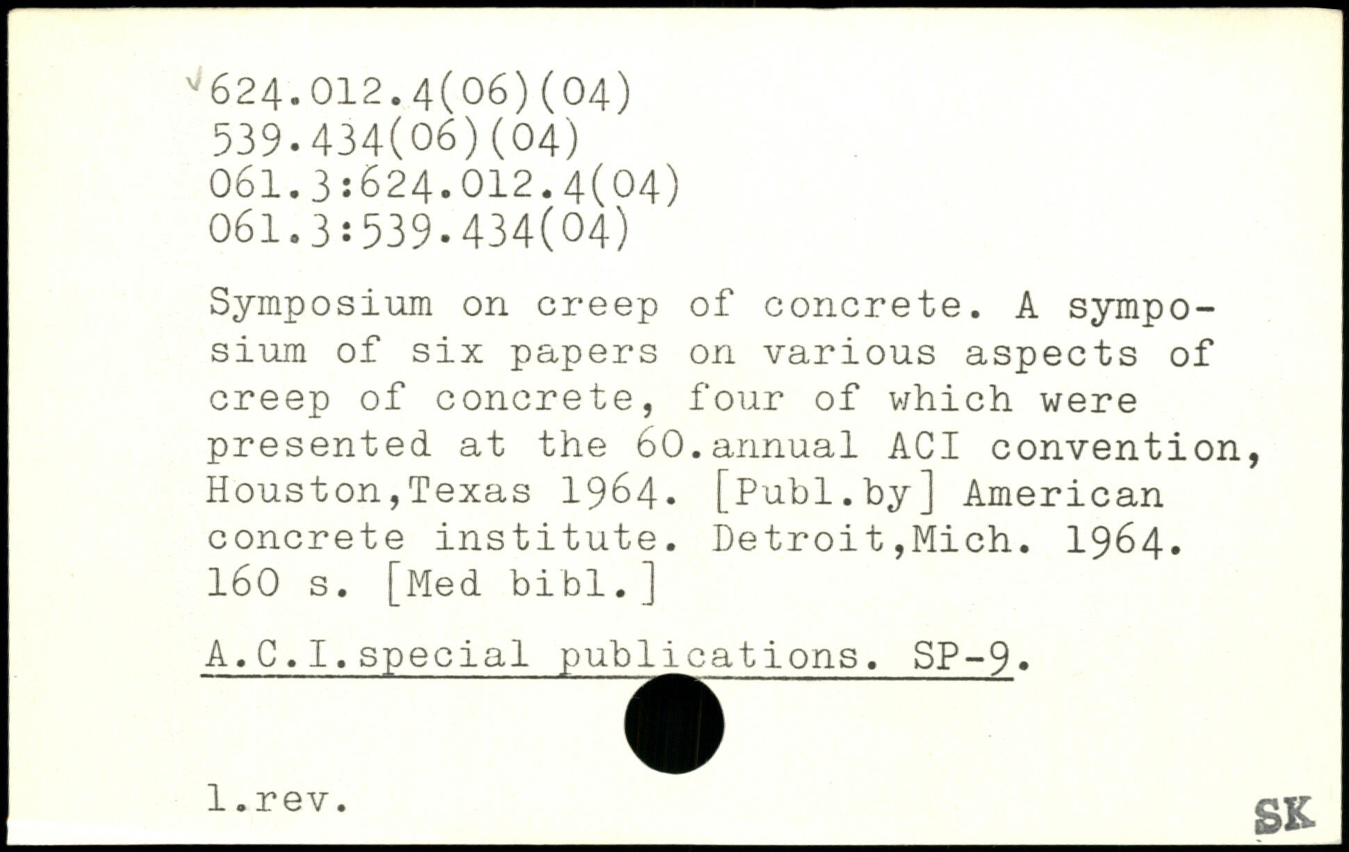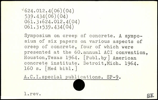 Symposium on creep of concrete. A symposium of six papers on various aspects of creep of concrete, four of v/hich were presented at the 60.annual ACI convention, Houston,Texas 1964.