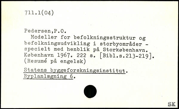 Modeller for befolkningsstruktur og befolkningsudvikling i storbyområder -specielt med henblik på Storkøbenhavn.