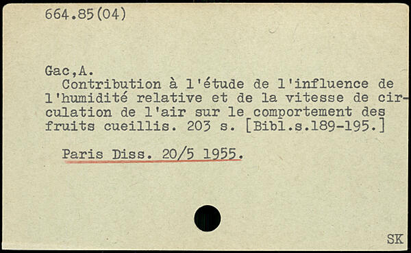 Contribution à 1.etude de l'influence de l’humidité relative et de la vitesse de circulation de l'air sur le comportement des fruits cue1111s.