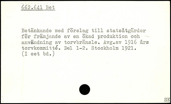 Betänkande med förslag till statsåtgärder för främjande av en ökad produktion och användning av torvhränsle. Avg.av 1916 års torvkommitté. Del 1-2.