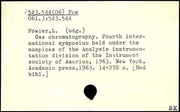 Gas chromatography. Fourth international symposium held under the auspices of the Analysis instrumentation division of the Instrument society of America, 1963.