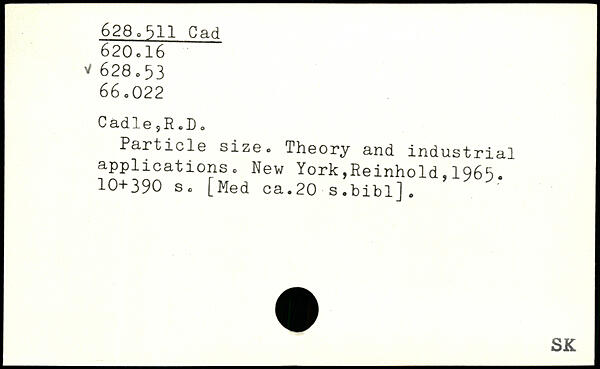 C ad. 1 © s R ,D , Particle size. Theory and industrial applications.