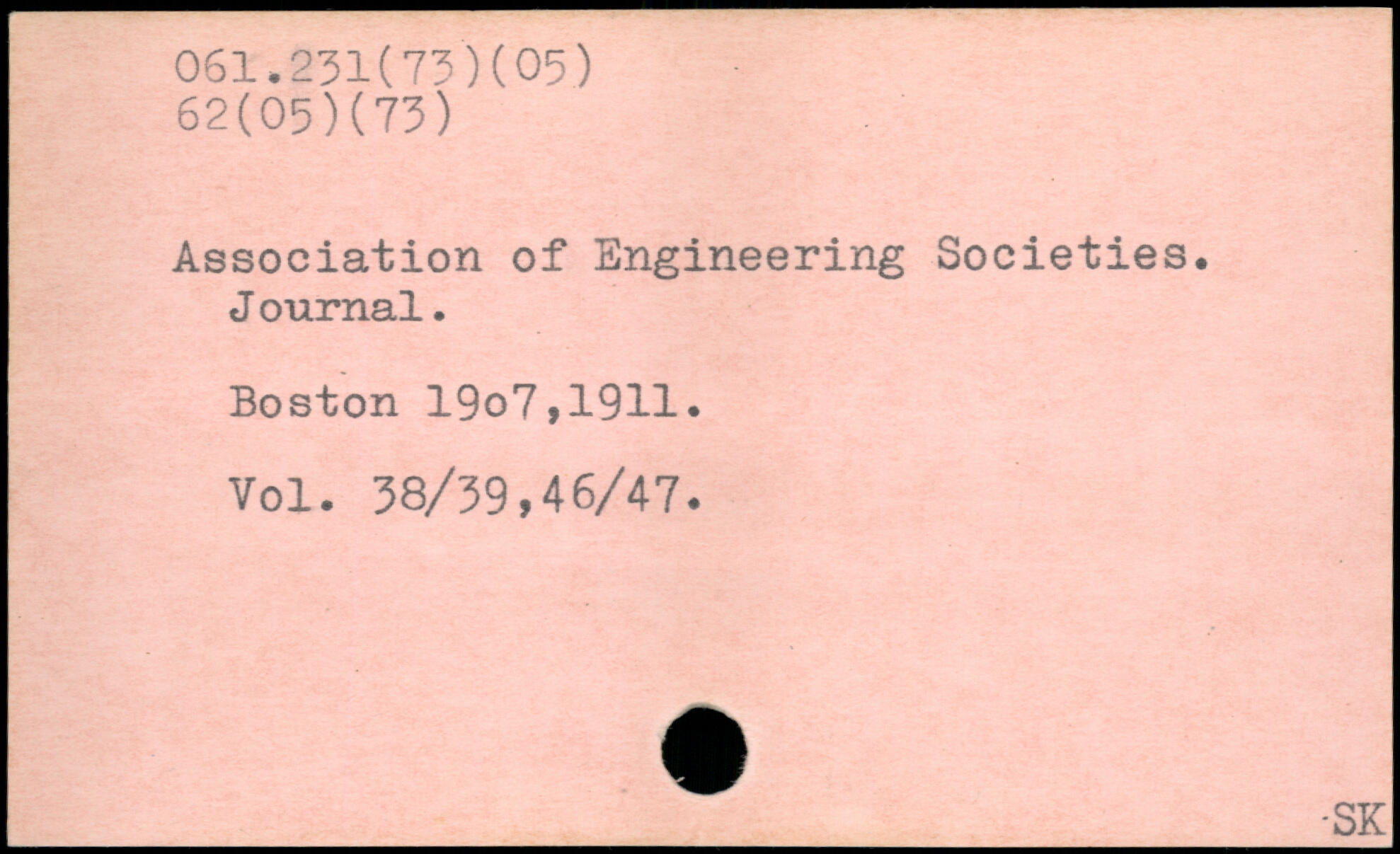Association of Engineering Societies. J ournal. Boston 19o7,19H. Vol. 38/39,46/47. _ -SK