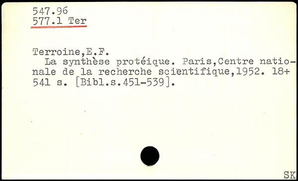 ïerroine,E.F. La synthèse protéique. Paris,Centre nationale de la recherche scientifique,1952. 18+