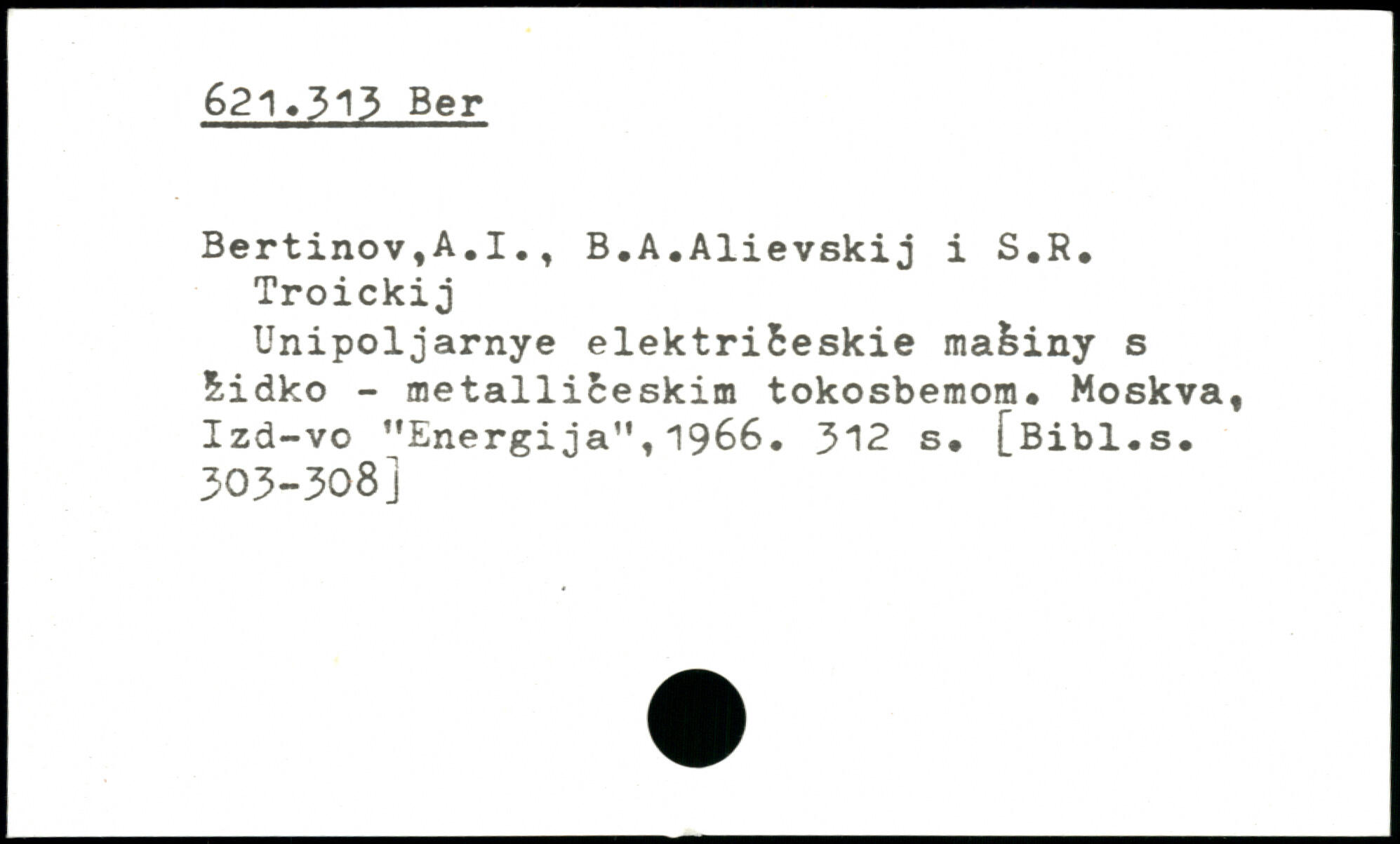 Bertinov,A.I., B.A,Alievskij i S.R. Troickij Unipoljarnye elektribeskie maèiny s &idko - metalliceskim tokosbemom. Moskva, Izd-vo ”Energija”,1966.