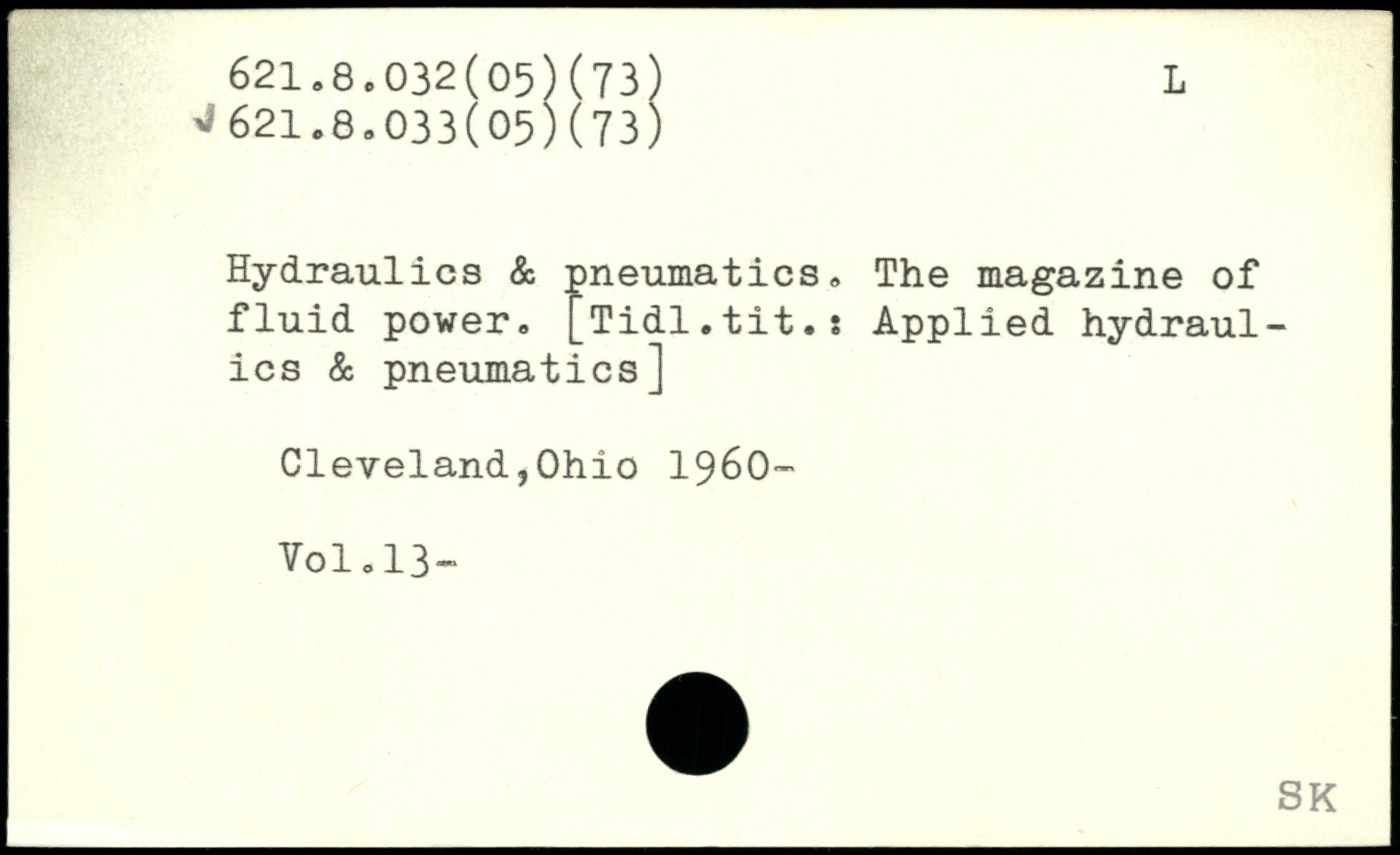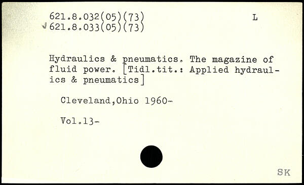 Hydraulics & pneumatics, The magazine of fluid power. [Tidl.tit.s Applied hydraulics & pneumatics]