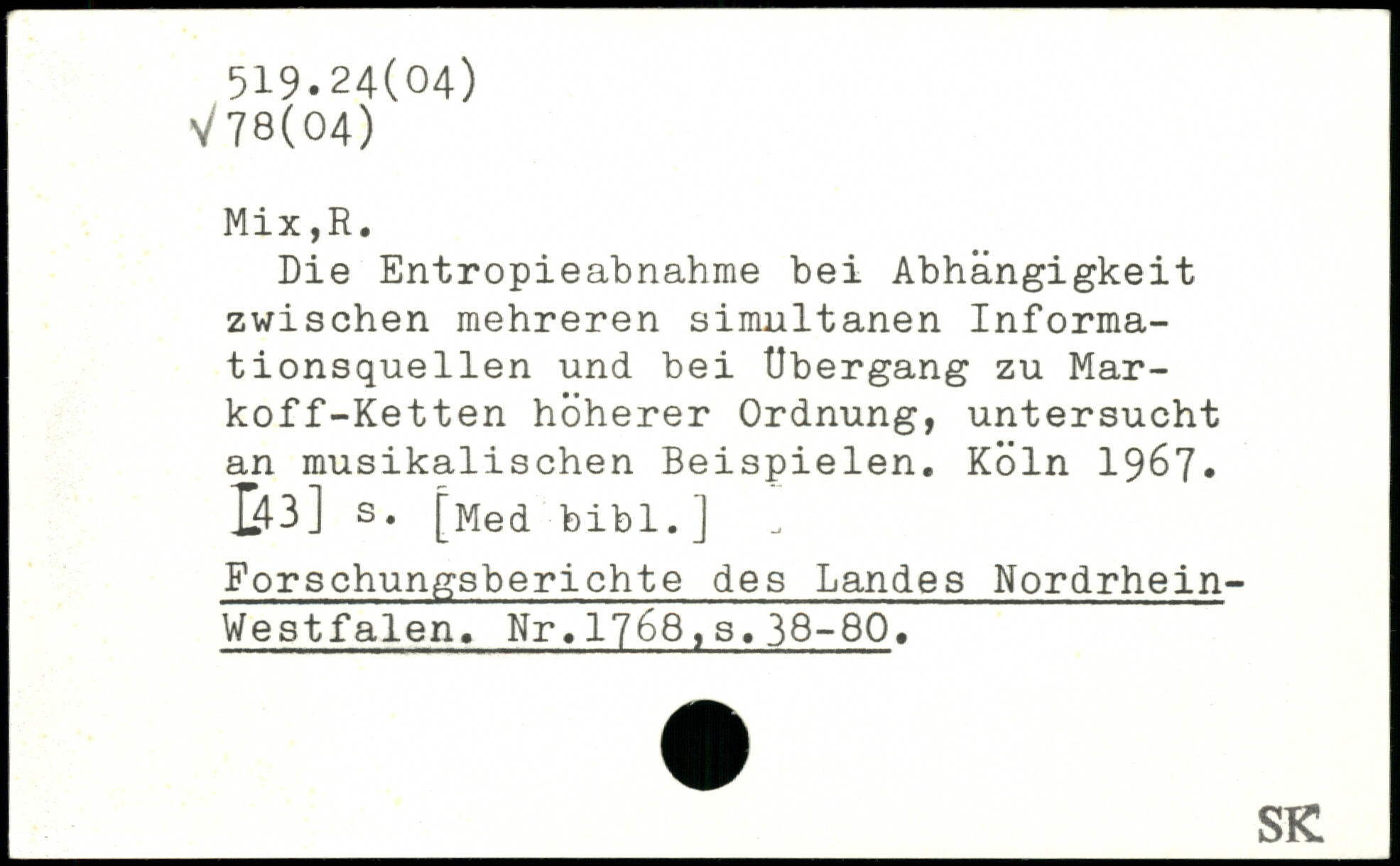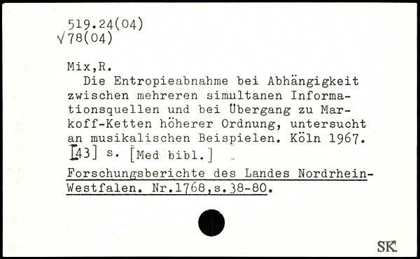 Die Entropieabnahme bei Abhängigkeit j zwischen mehreren simultanen Informationsquellen und bei Übergang zu Mar-koff-Ketten höherer Ordnung, untersucht an musikalischen Beispielen.