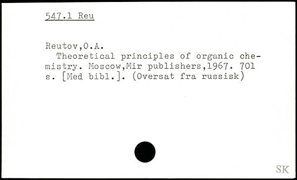 Theoretical principles of organic chemistry. Moscow,Mir publishers,19&7.