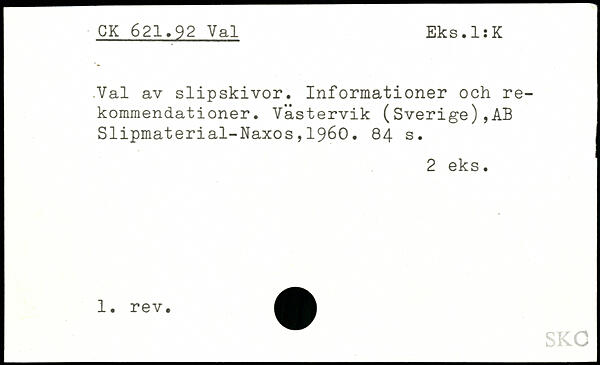 Val av slipskivor. Informationer och rekommendationer. Västervik (Sverige),AB Slipmaterial-Naxos,1960.