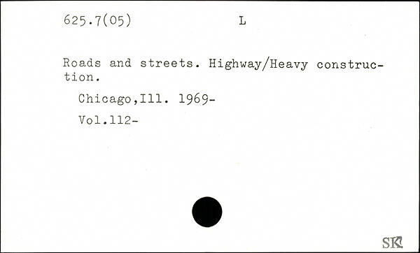 Roads and streets. Highway/Heavy construe- tion. Chicago,111. 1969-