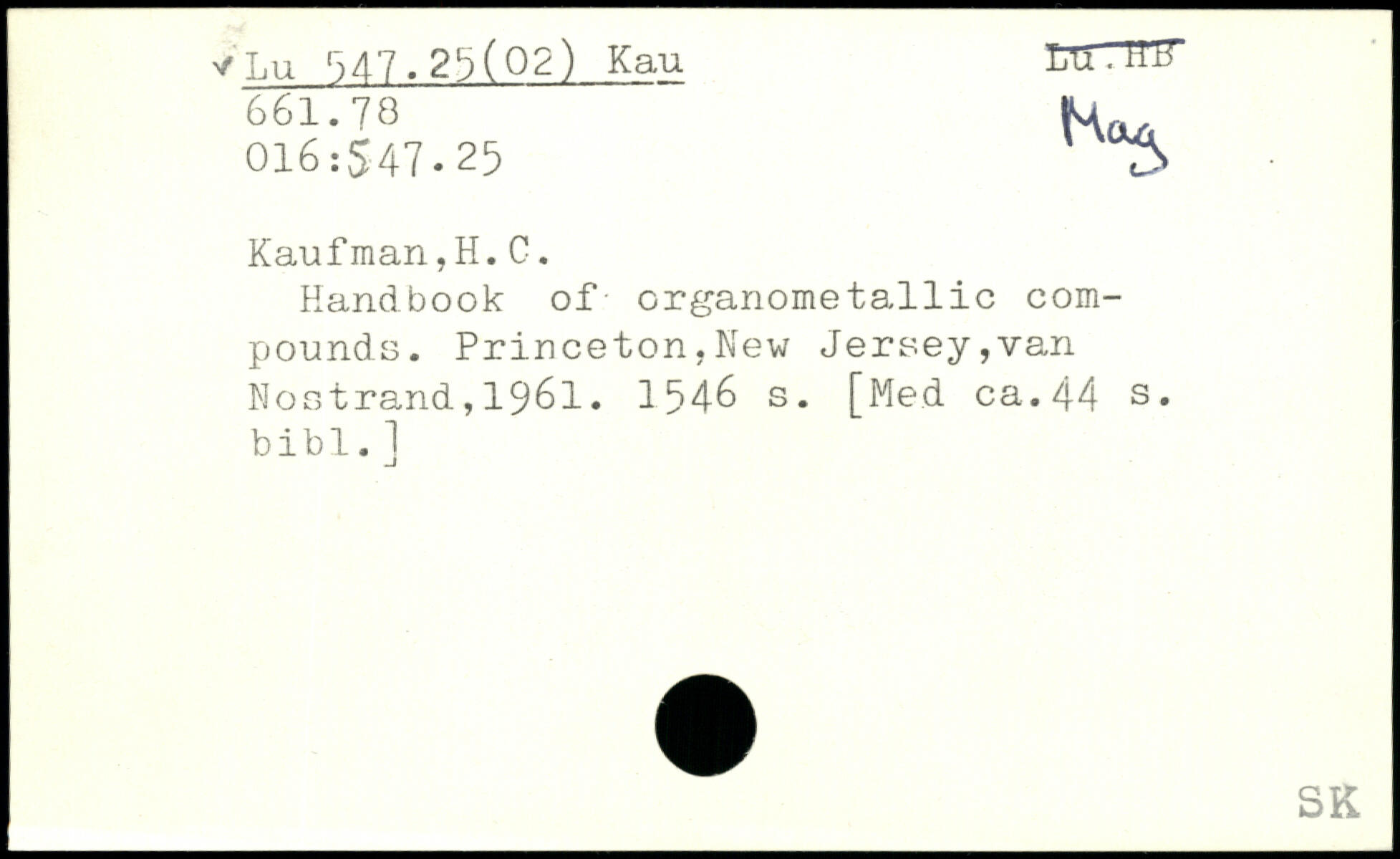 Handbook of organometallic compounds. Princeton,New Jersey,van Nostrand,1961.