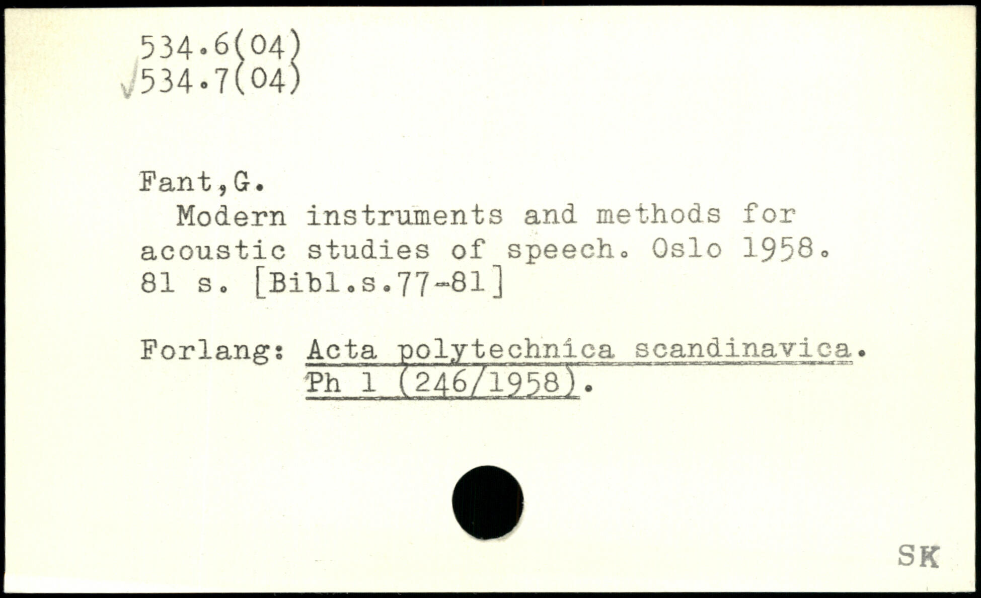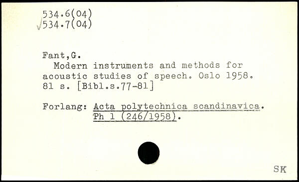 Modern instruments and methods for acoustic studies of speech. Oslo 1958.