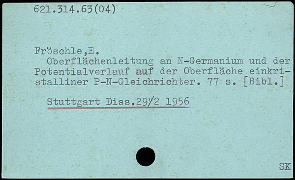 Oberflächenleitung an TT-Germanium und der Potentialverlauf auf der Oberfläche einkristalliner P-N-Gleichrichter.