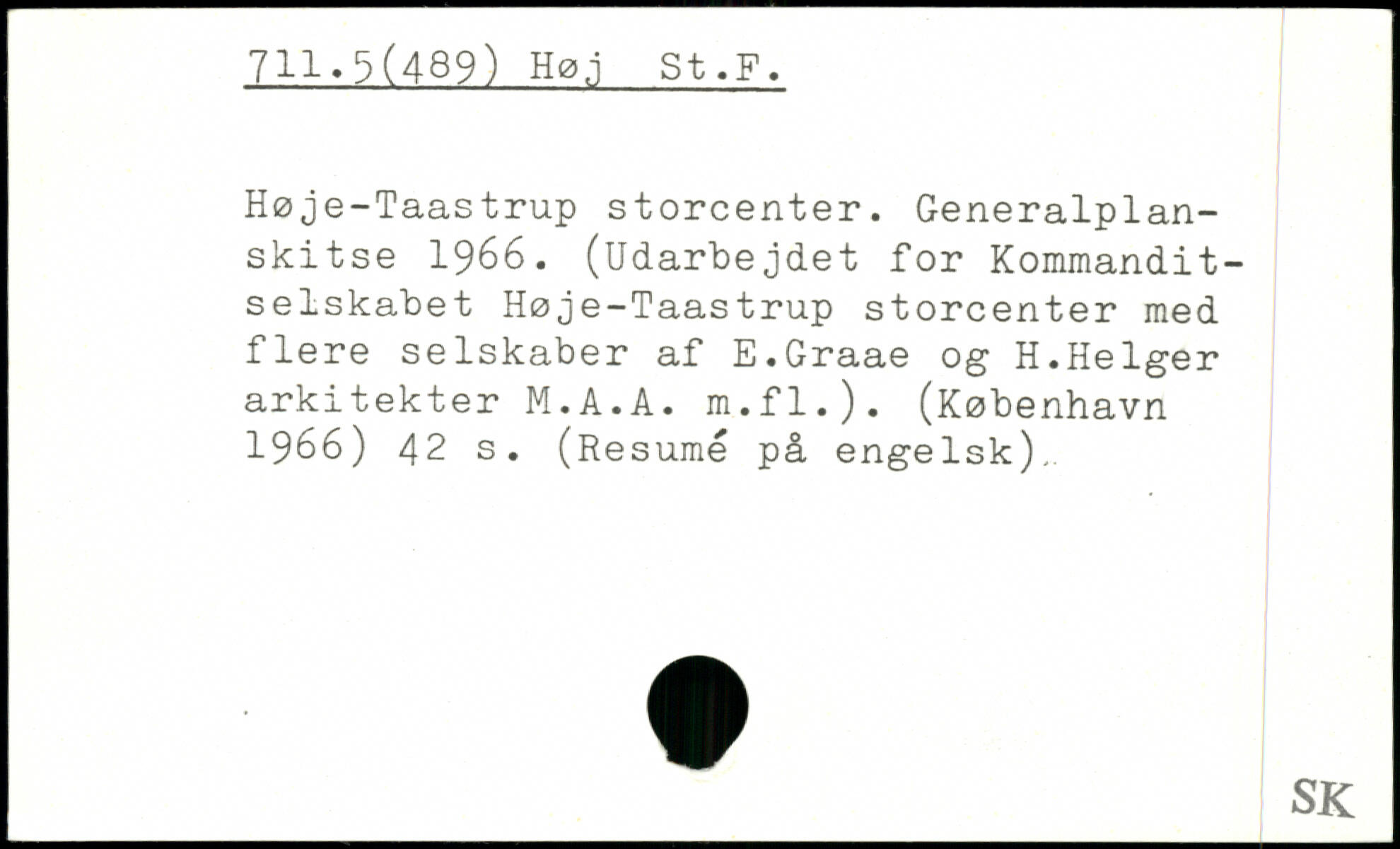 Høje-Taastrup storcenter. Generalplanskitse 1966. (Udarbejdet for Kommanditselskabet Høje-Taastrup storcenter med flere selskaber af E.Graae og H.Helger arkitekter M.A.A. m.fl.). (