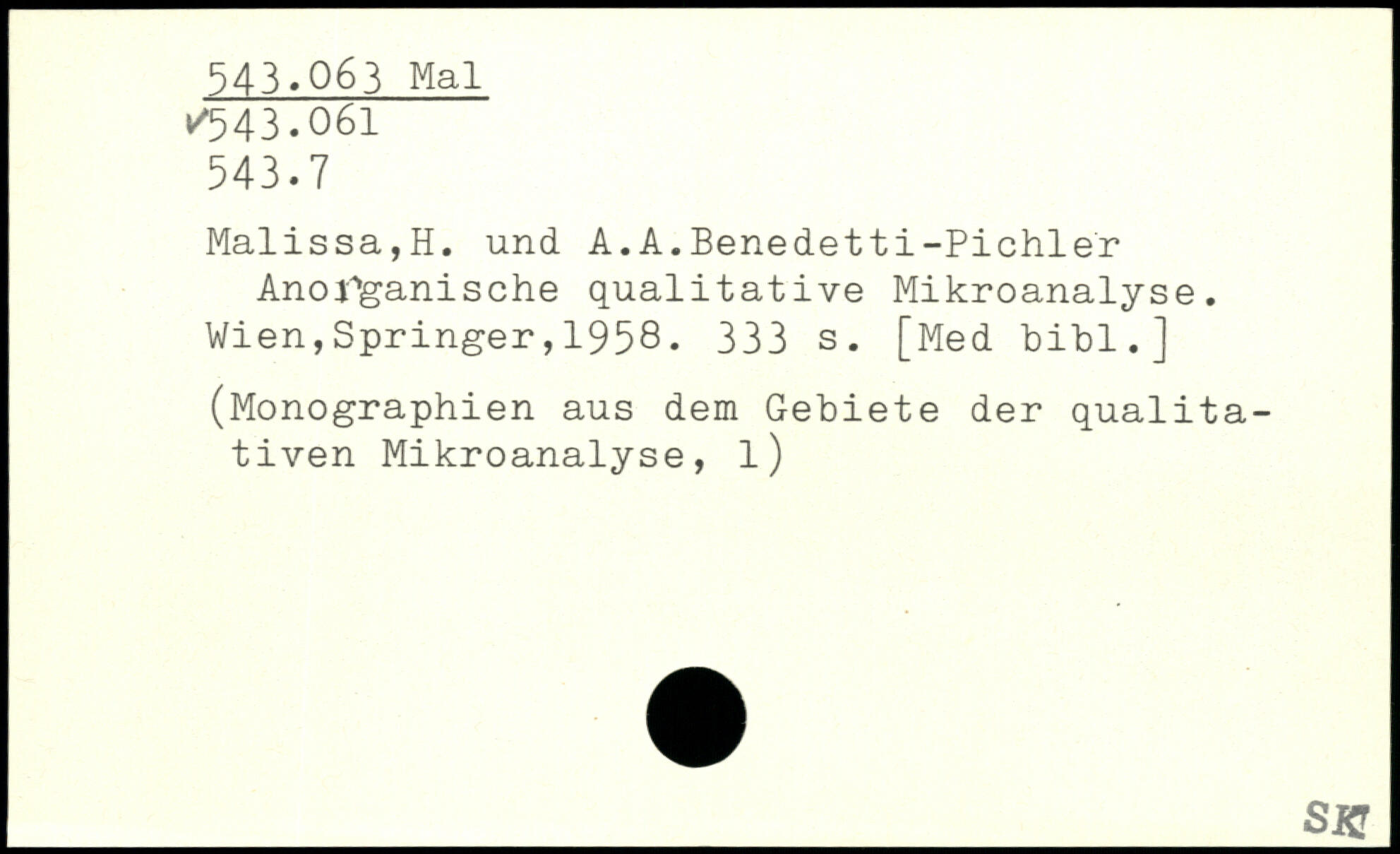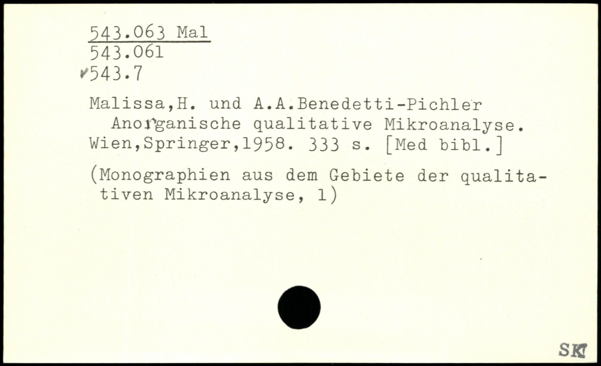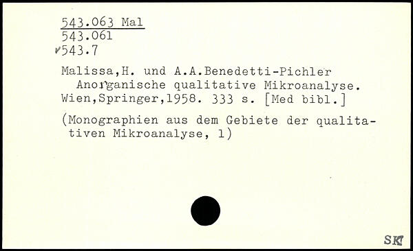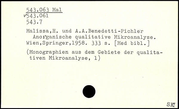 Malissa,H. und A.A.Benedetti-Pichler Anorganische qualitative Mikroanalyse.