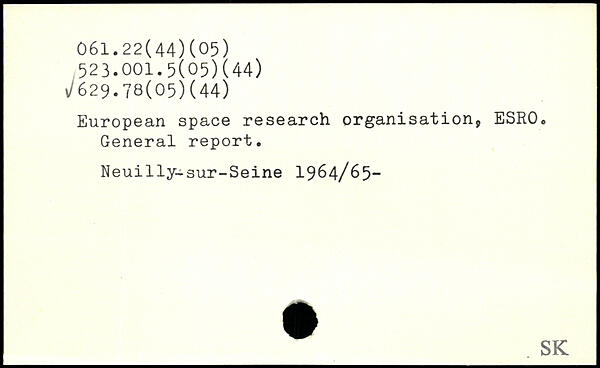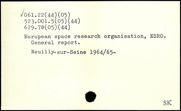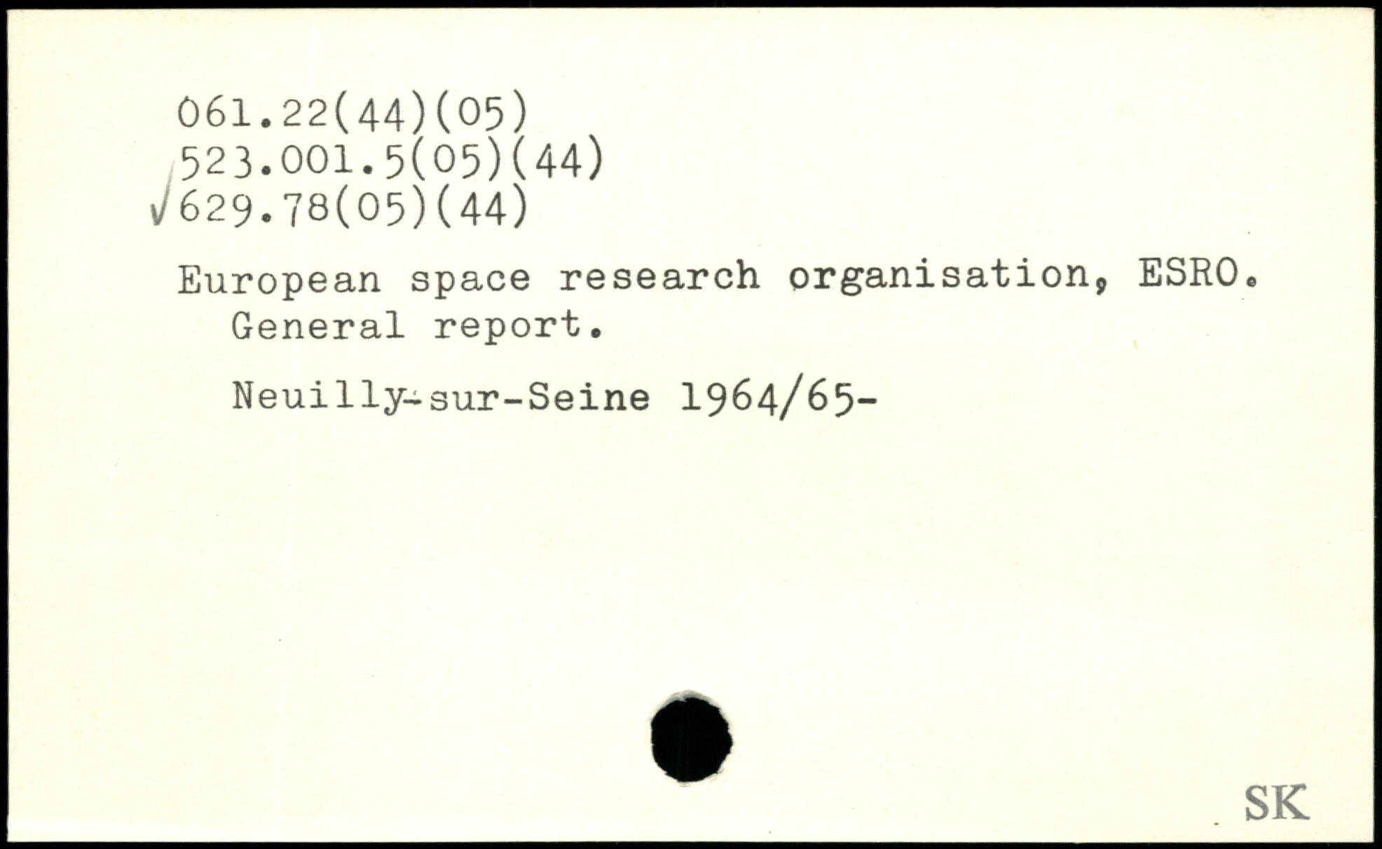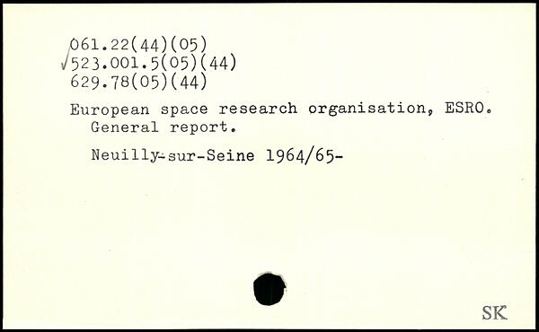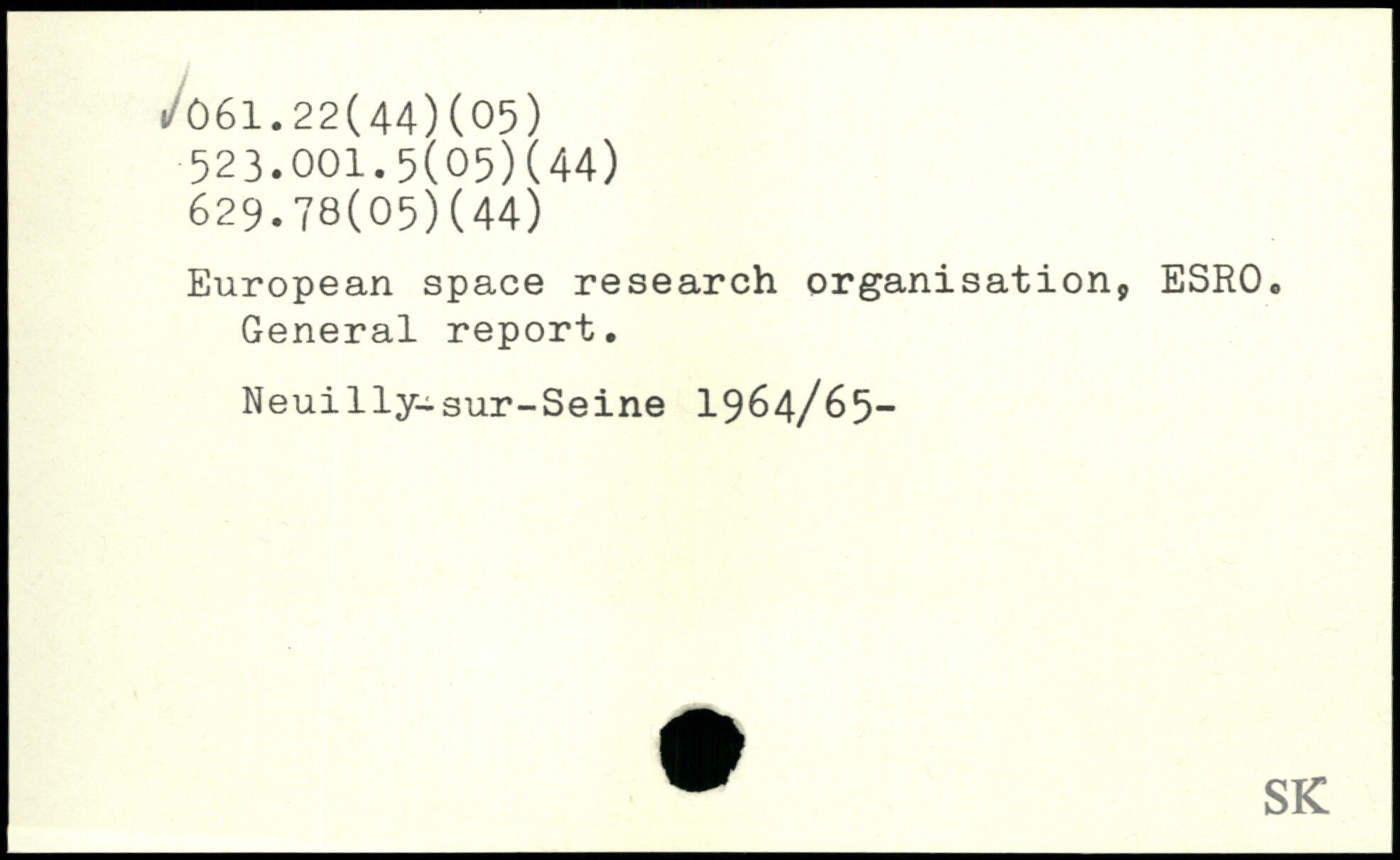 European space research organisation, ESRO. General report. Neuilly-sur-Seine 1964/65-