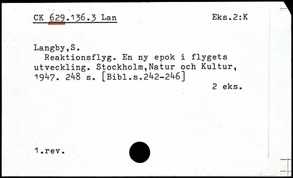 Reaktionsflyg. En ny epok i flygets utveckling, Stockholm,Natur och Kultur, 19V7.