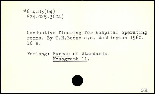 Conductive flooring for hospital operating rooms. By T,H.Boone aco.