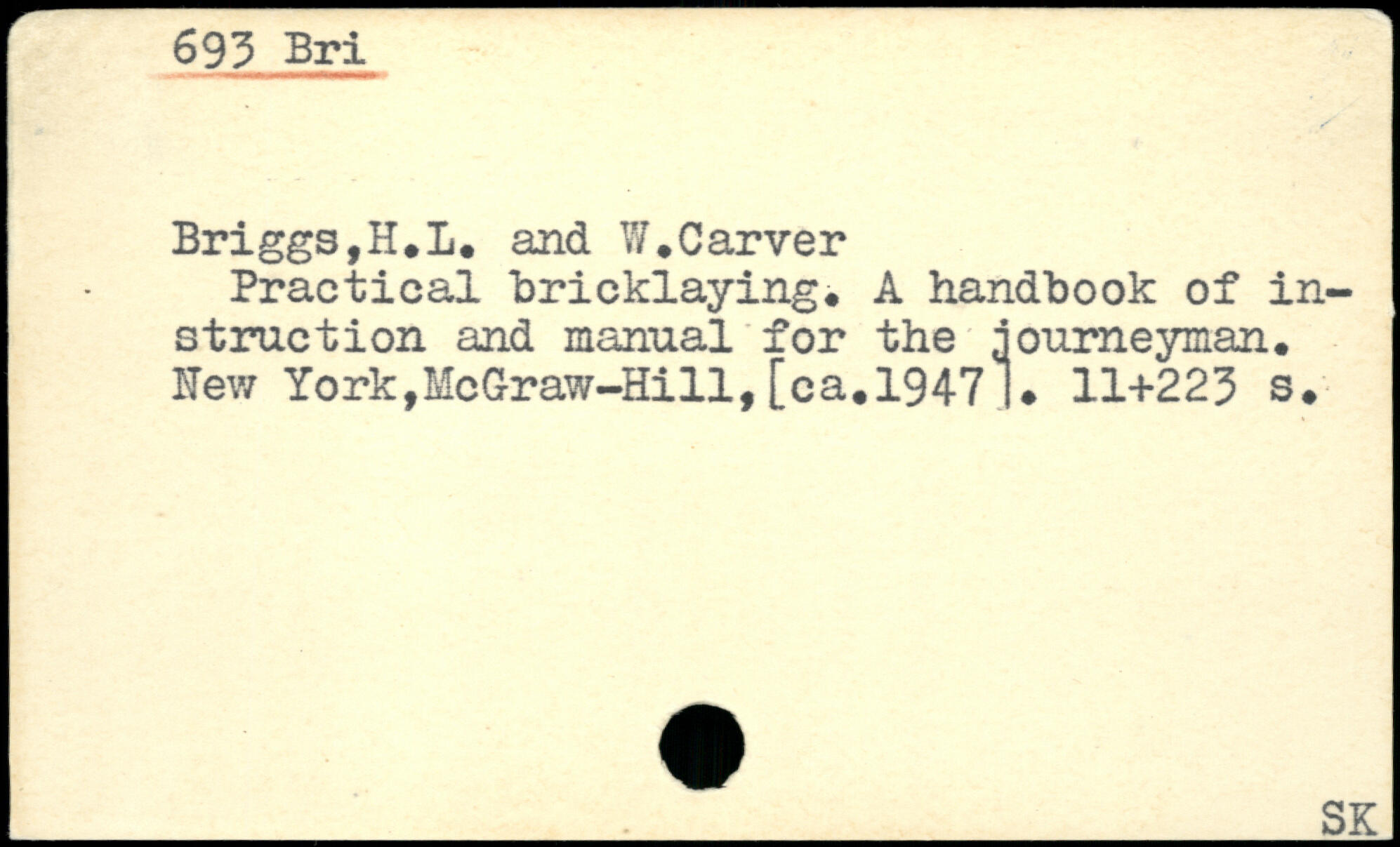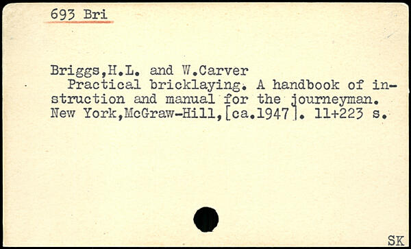 Briggs,H.L. and ÏÏ.Carver Practical Bricklaying. A handbook of instruction and manual for the journeyman. Hew York,McGraw-Hill, [ca.19471.