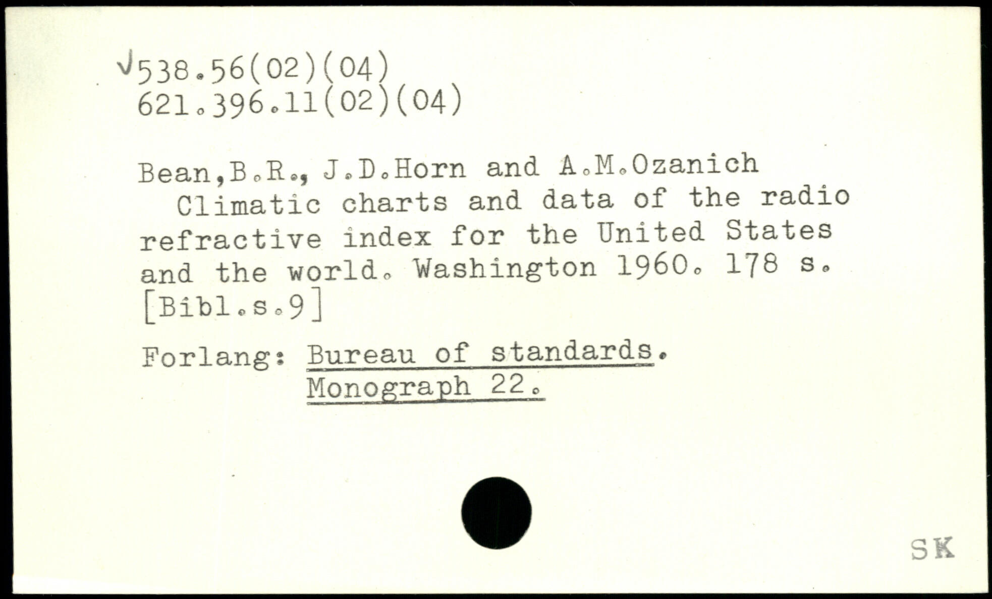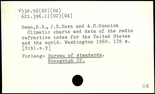 Bean,BcR., J.DoHorn and AoM.Ozanich Climatic charts and data of the radio refractive index for the United States and the world.