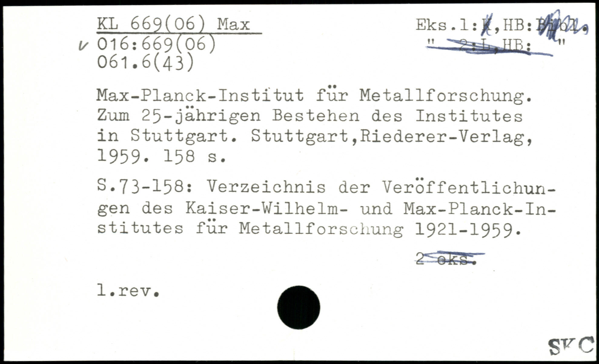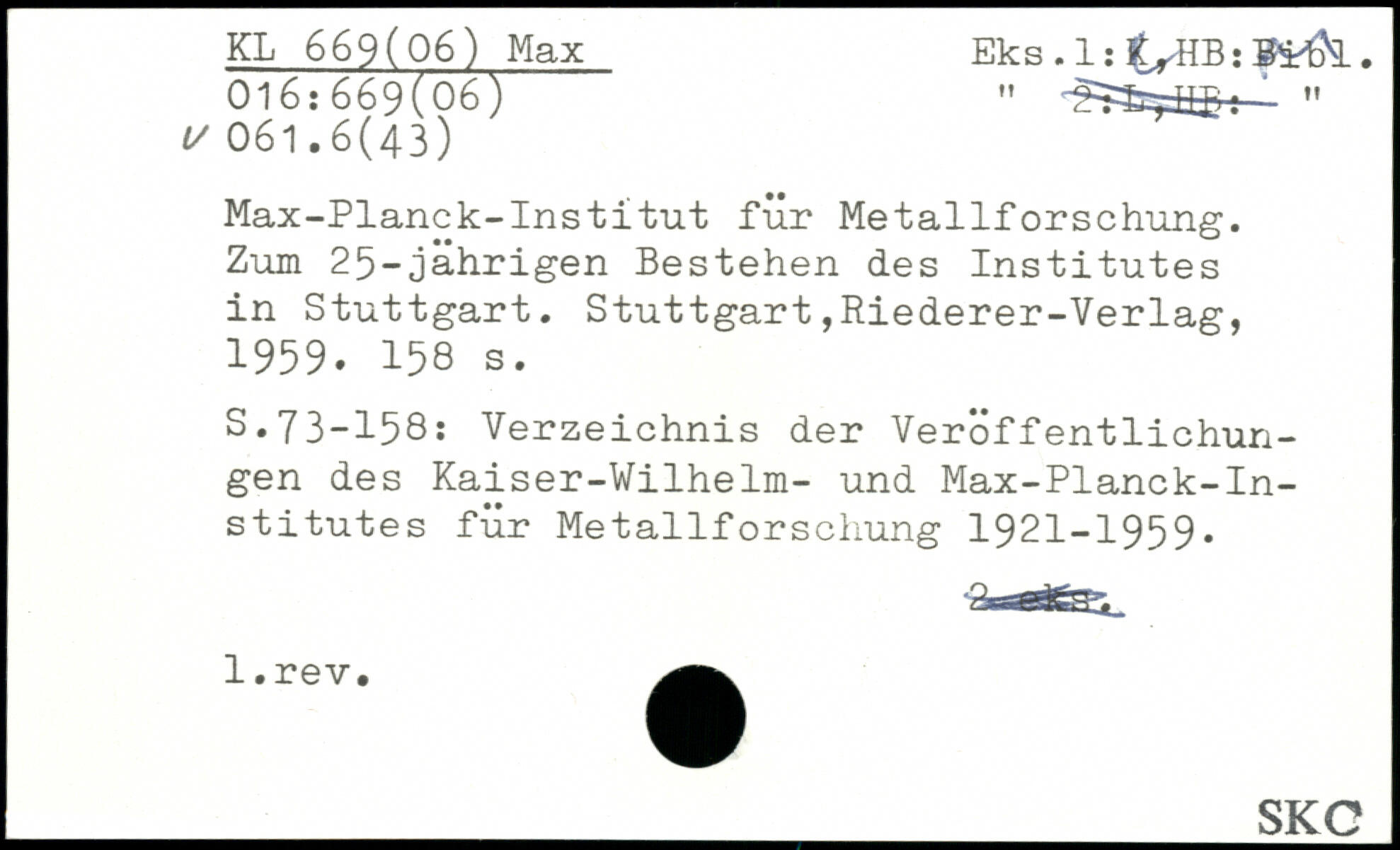 Max-Planck-Institut für Metallforschung. Zum 25-jährigen Bestehen des Institutes in Stuttgart.