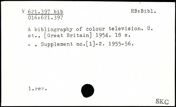 A bibliography of colour television. U. st., [Great Britain] 1954