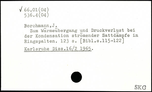 Zum Wärmeübergang und Druckverlust bei der Kondensation strömender Sattdampfe in Ringspalten.