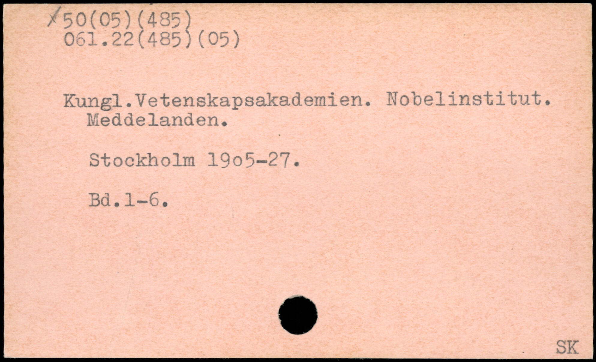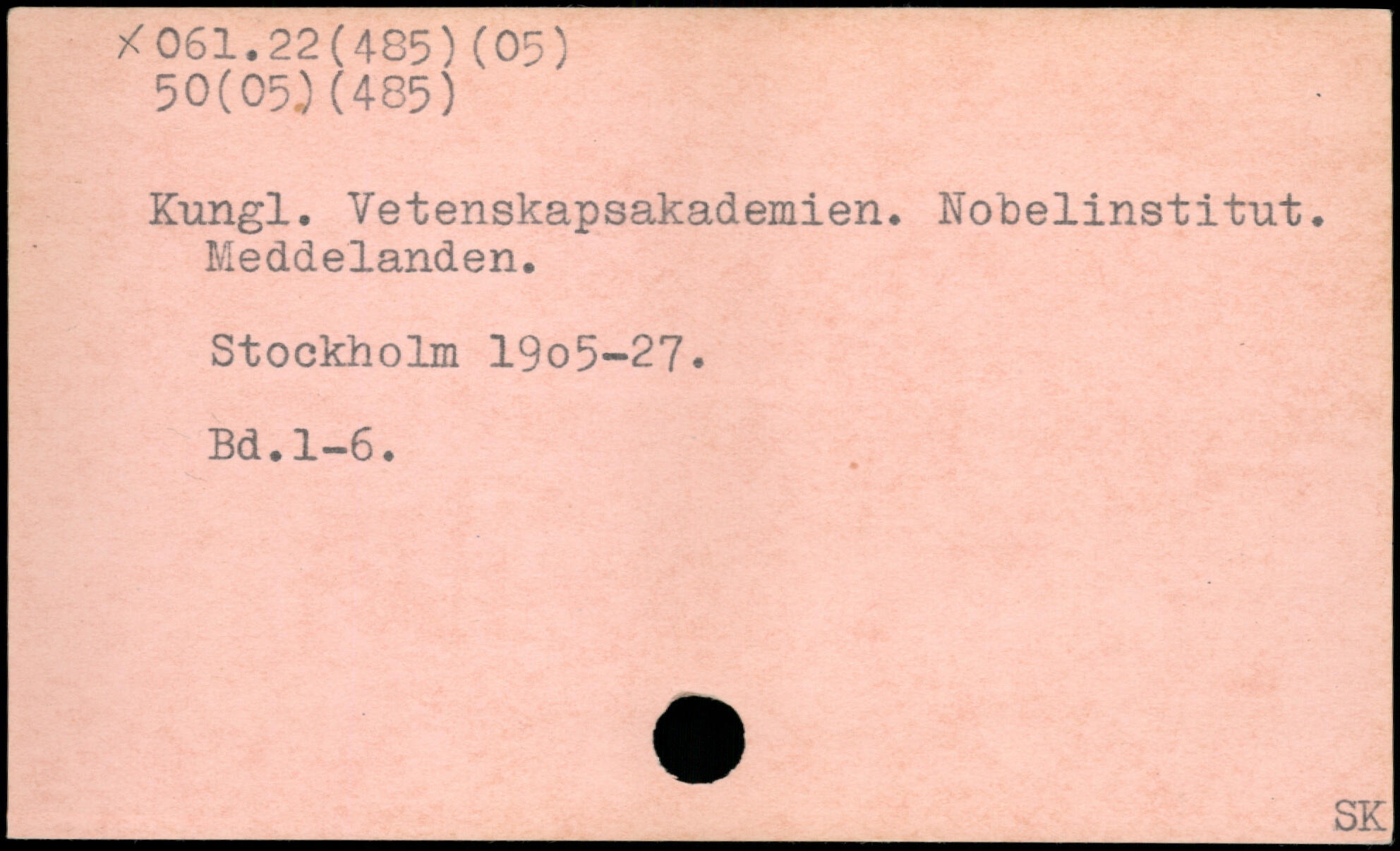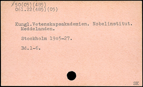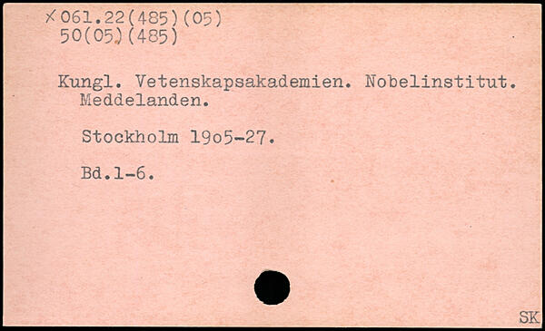 Kungl. Vetenskapsakademien. Nobelinstitut. Meddelanden. Stockholm 19o5-27.