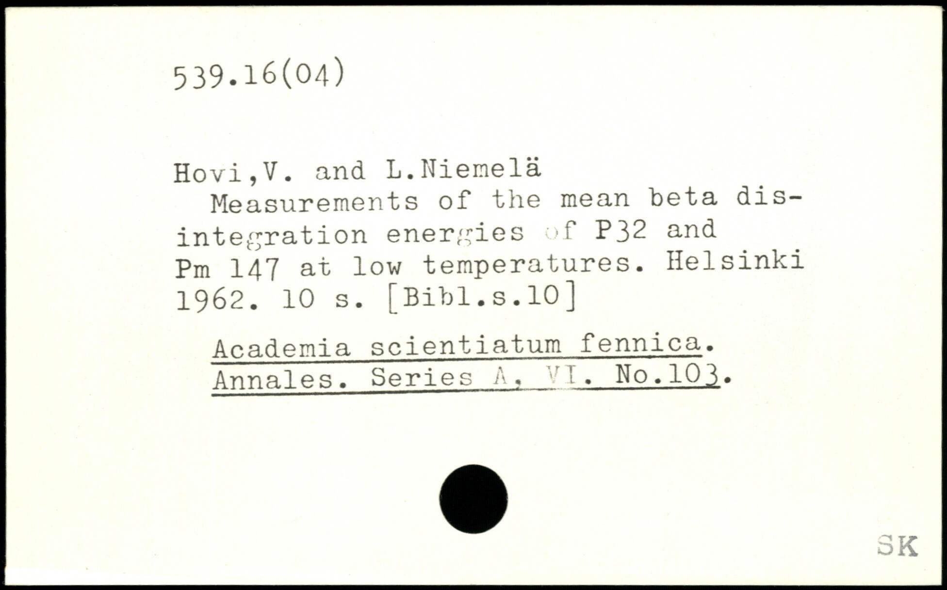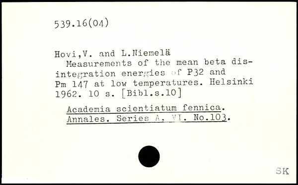 Measurements of the mean beta disintegration energies uf P32 and Pm 147 at low temperatures.