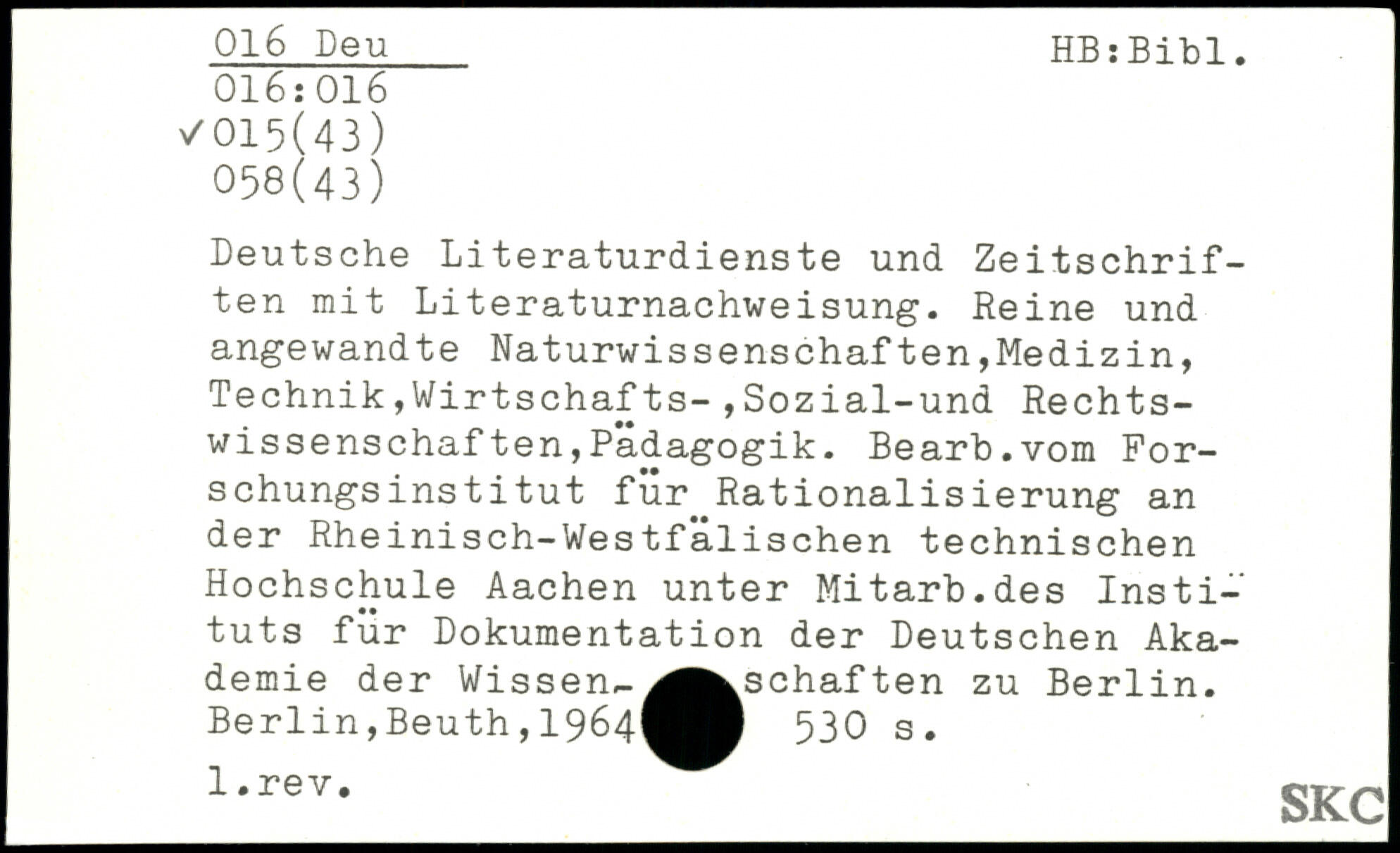 Deutsche Literaturdienste und Zeitschriften mit Literaturnachweisung. Reine und angewandte Naturwissenschaften,Medizin, Technik,Wirtschafts-,Sozial-und Rechtswissenschaf ten,Pädagogik. Bearb.vom Forschungsinstitut für Rationalisierung an der Rheinisch-Westfalischen technischen Hochschule Aachen unter Mitarb.des Instituts für Dokumentation der Deutschen Akademie der Wissen-^^^schaften zu Berlin.