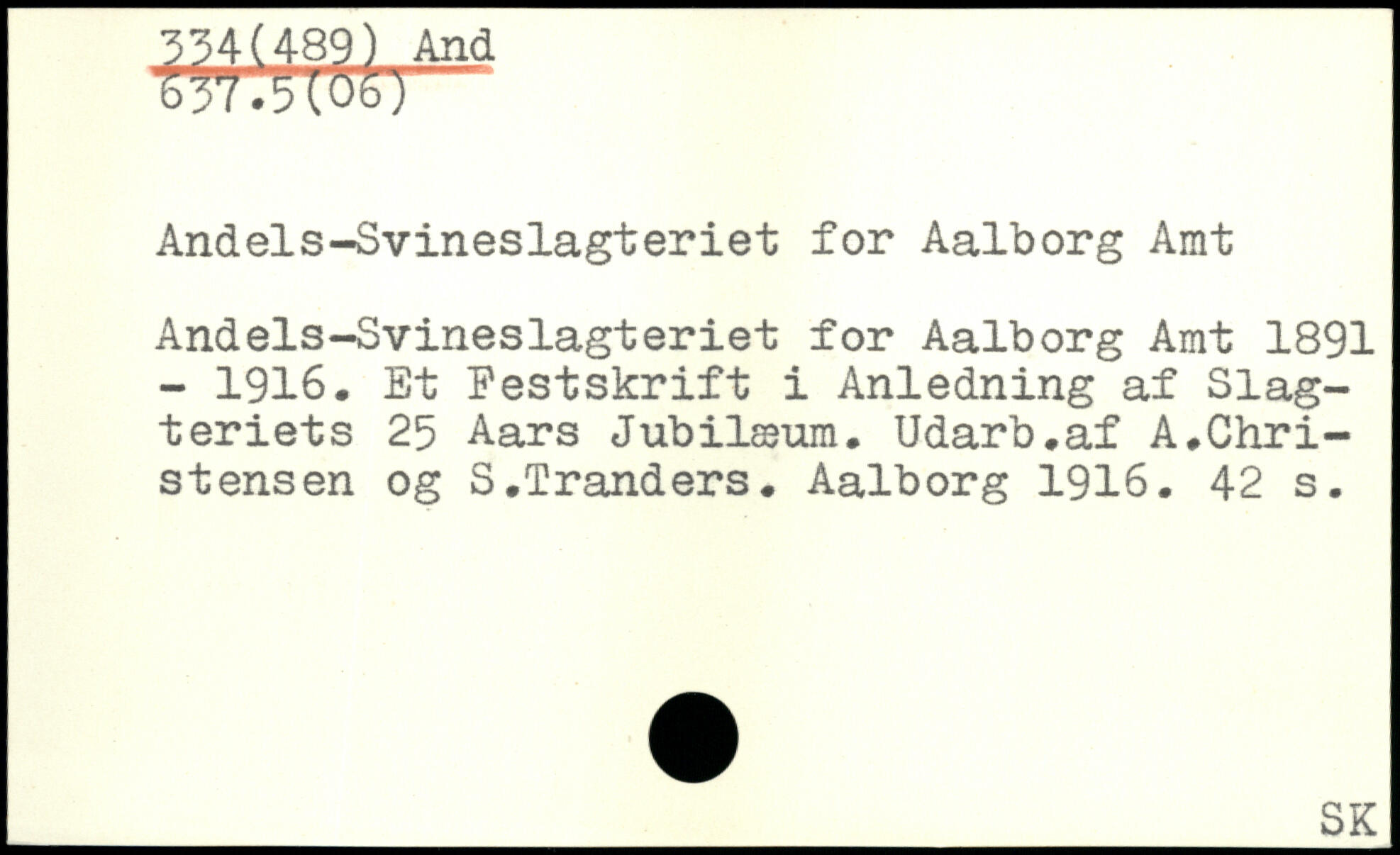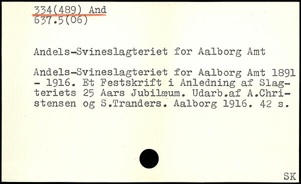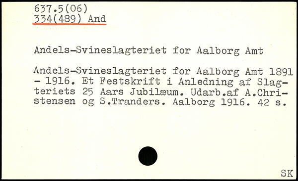 Andels-Svineslagteriet for Aalborg Amt Andels-Svineslagteriet for Aalborg Amt 1891 - 1916. Et Festskrift i Anledning af Slagteriets 25 Aars Jubilæum. Udarb.af A.Christensen og S.Tranders.