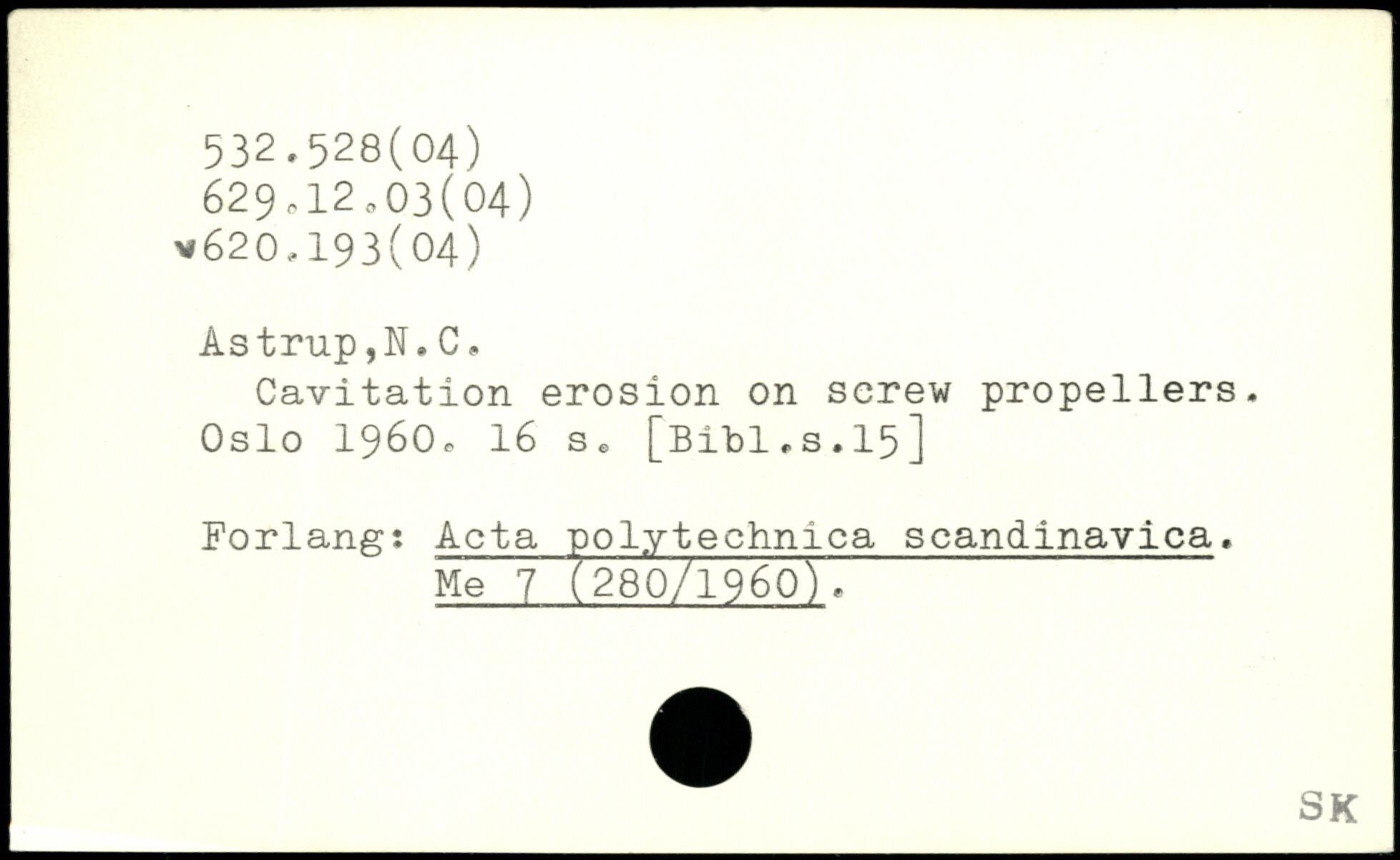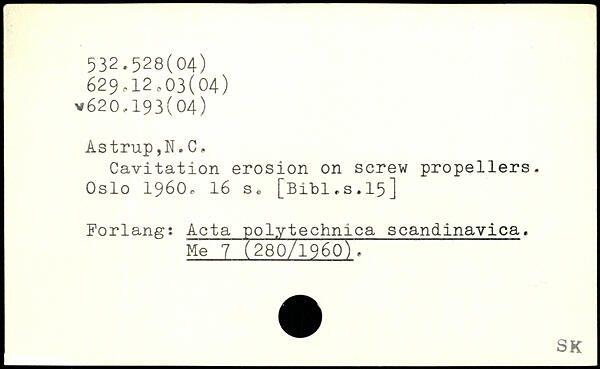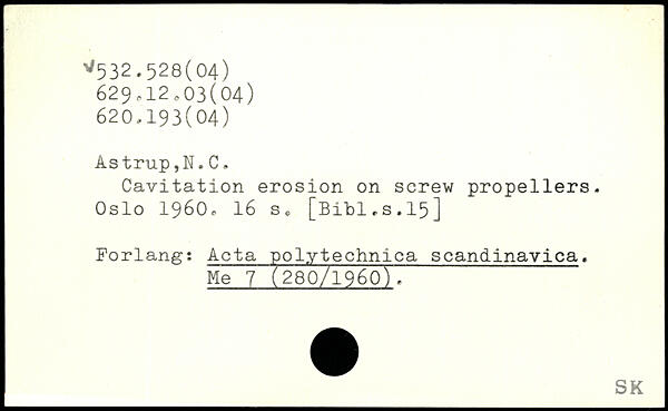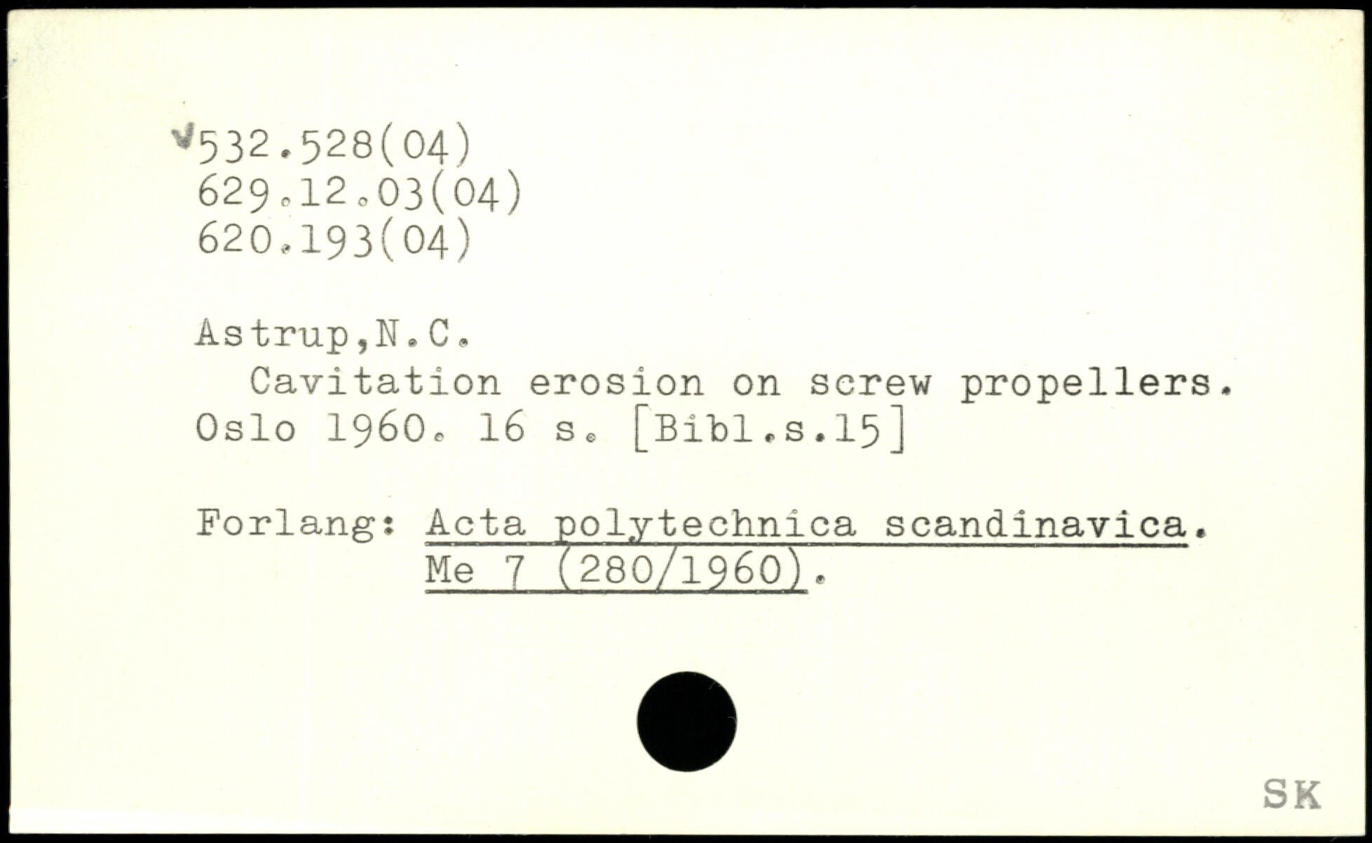 As trup ,ÎT. C. Cavitation érosion on screw propellers. Oslo 1960